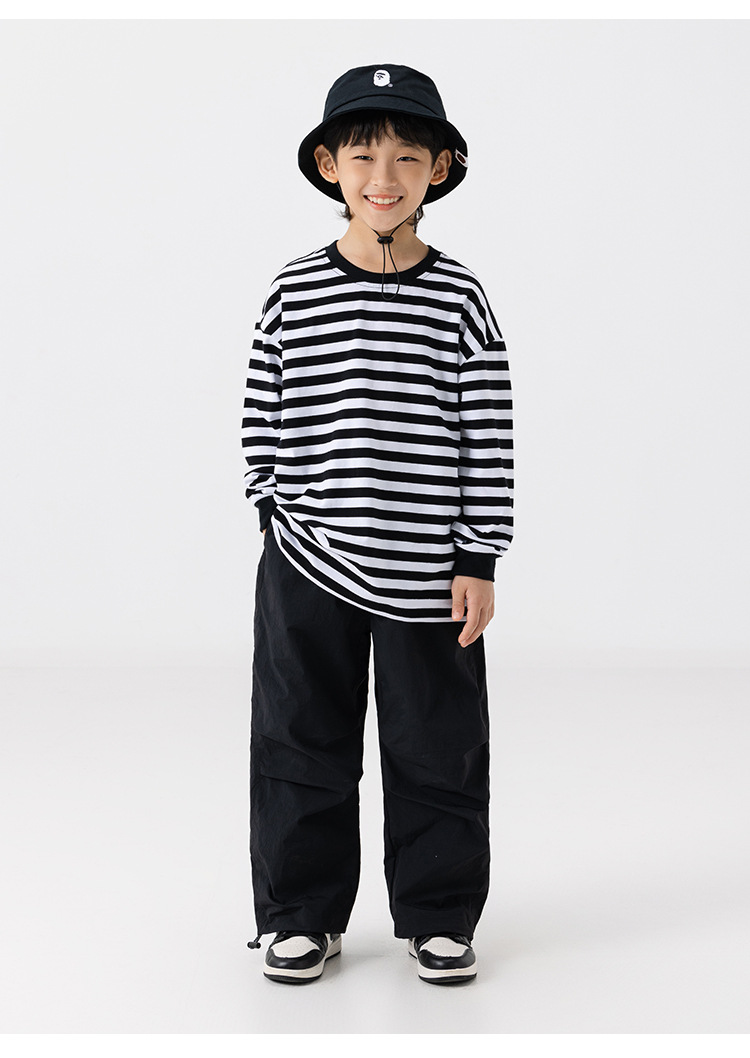 EK 아동복 일본 줄무늬 소년 느슨한 긴팔 티셔츠 서양식 맞춤형 중대형 아동용 다용도 탑 티셔츠 트렌디 브랜드스토어 가기
