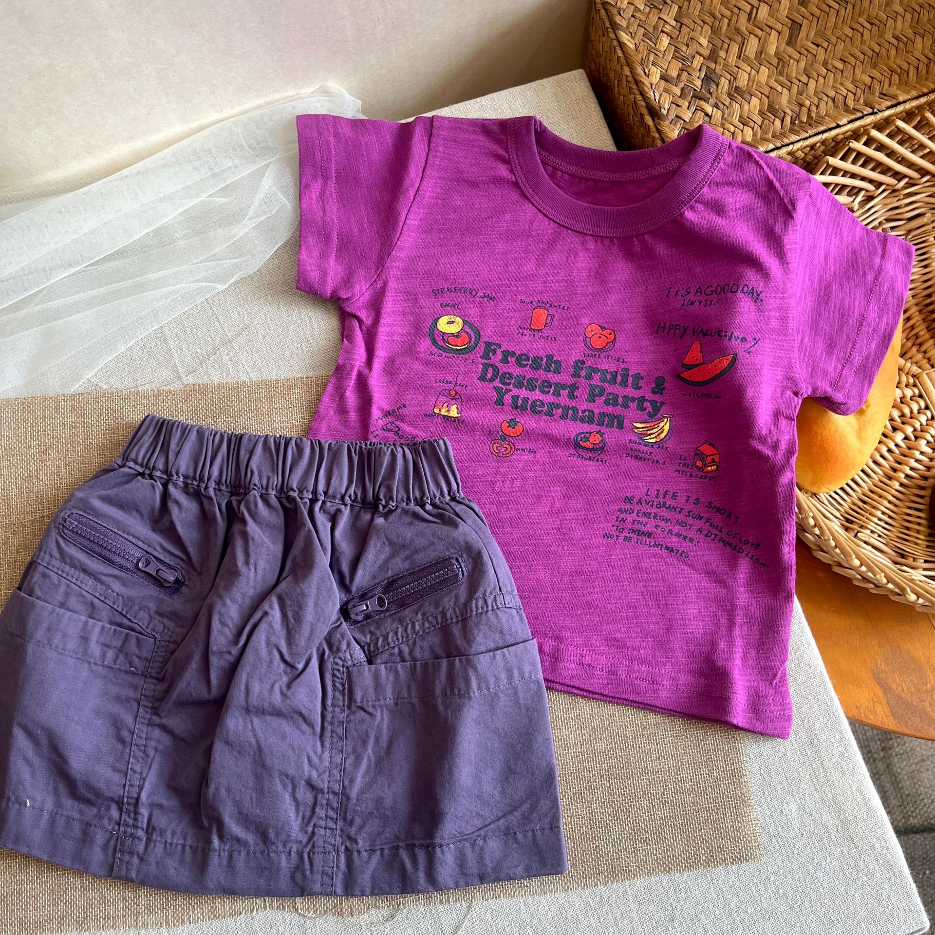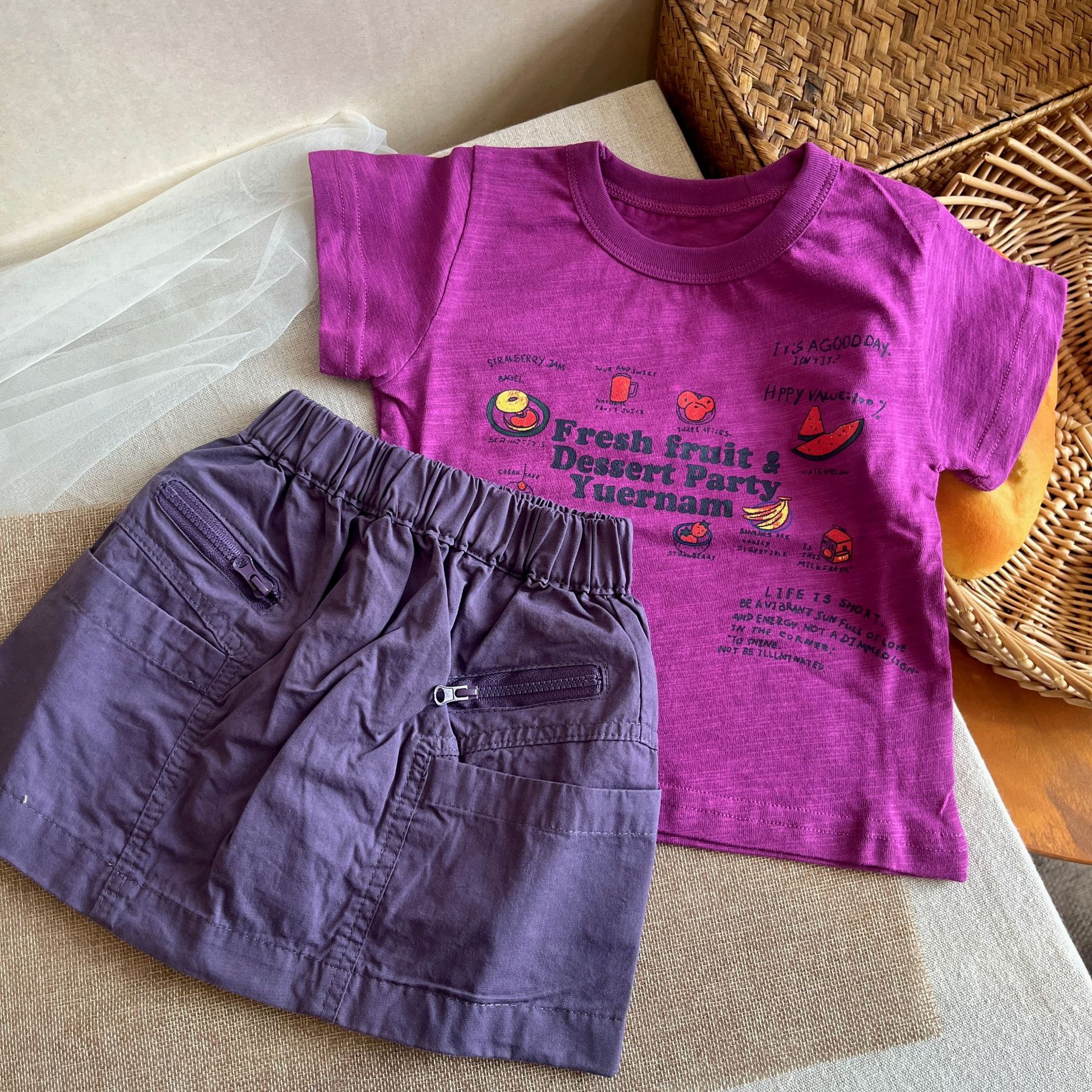 재고 있음 ~ 2025 소녀 여름 새 스타일 일본 손으로 그린 편지 반팔 베이비 코튼 티셔츠 아동상의 유행스토어 가기