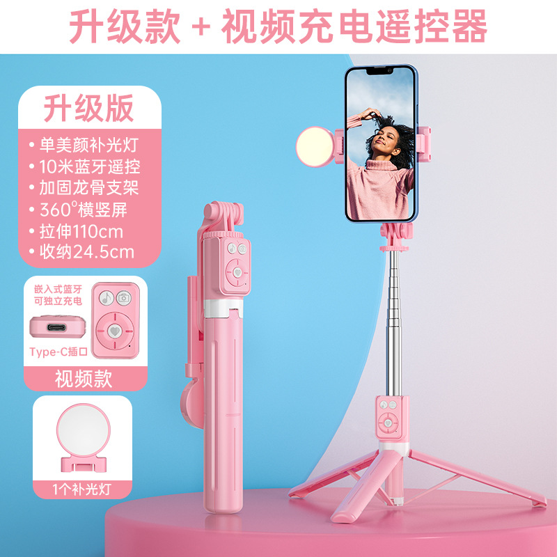 • BT12 핑크 확장 1.7m [리모컨 + 삼각대 + 가로 및 세로 촬영] 단일 조명
