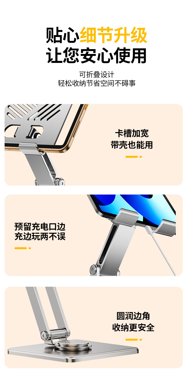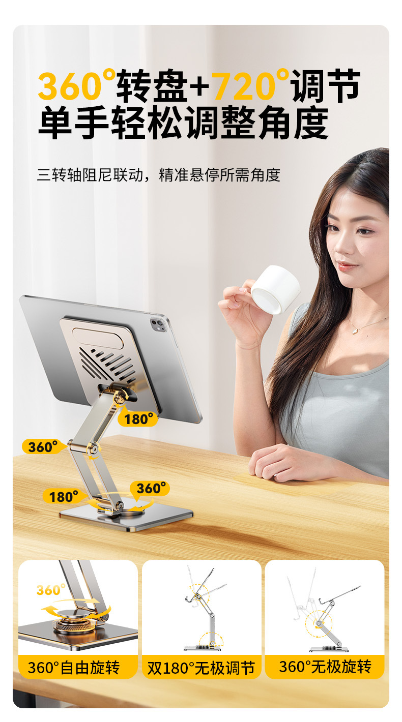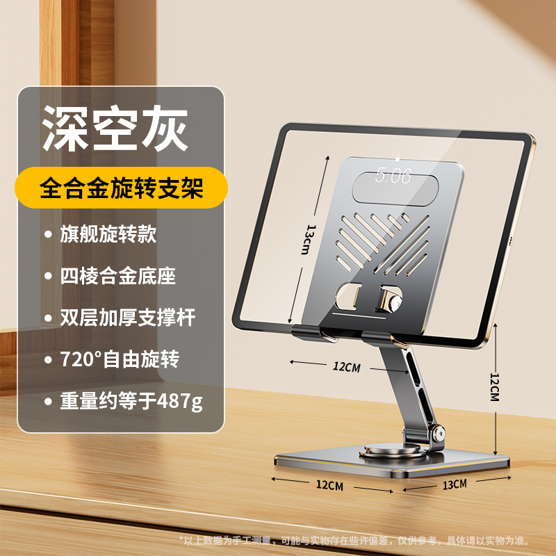 • [플래그십 로터리 모델] 다크 컬러 + 풀 합금 제작 [720°회전/접이식 수납/휴대폰 및 태블릿용 범용]