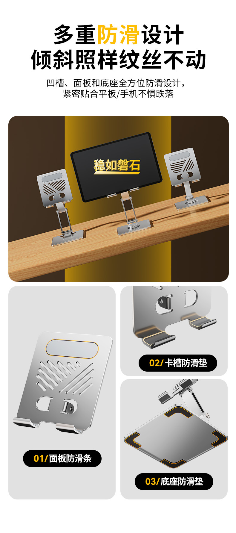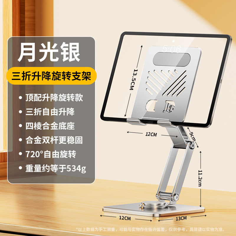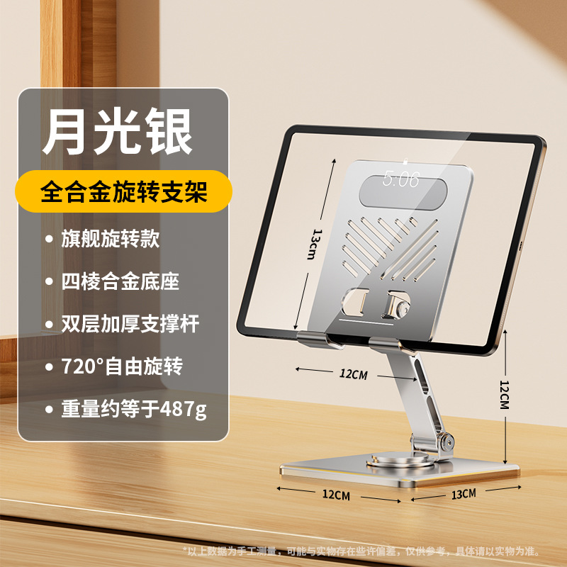 • [플래그십 로터리 모델] 프로스트 실버 + 풀 합금 제작 [720°회전/접이식 수납/휴대폰 및 태블릿용 범용]