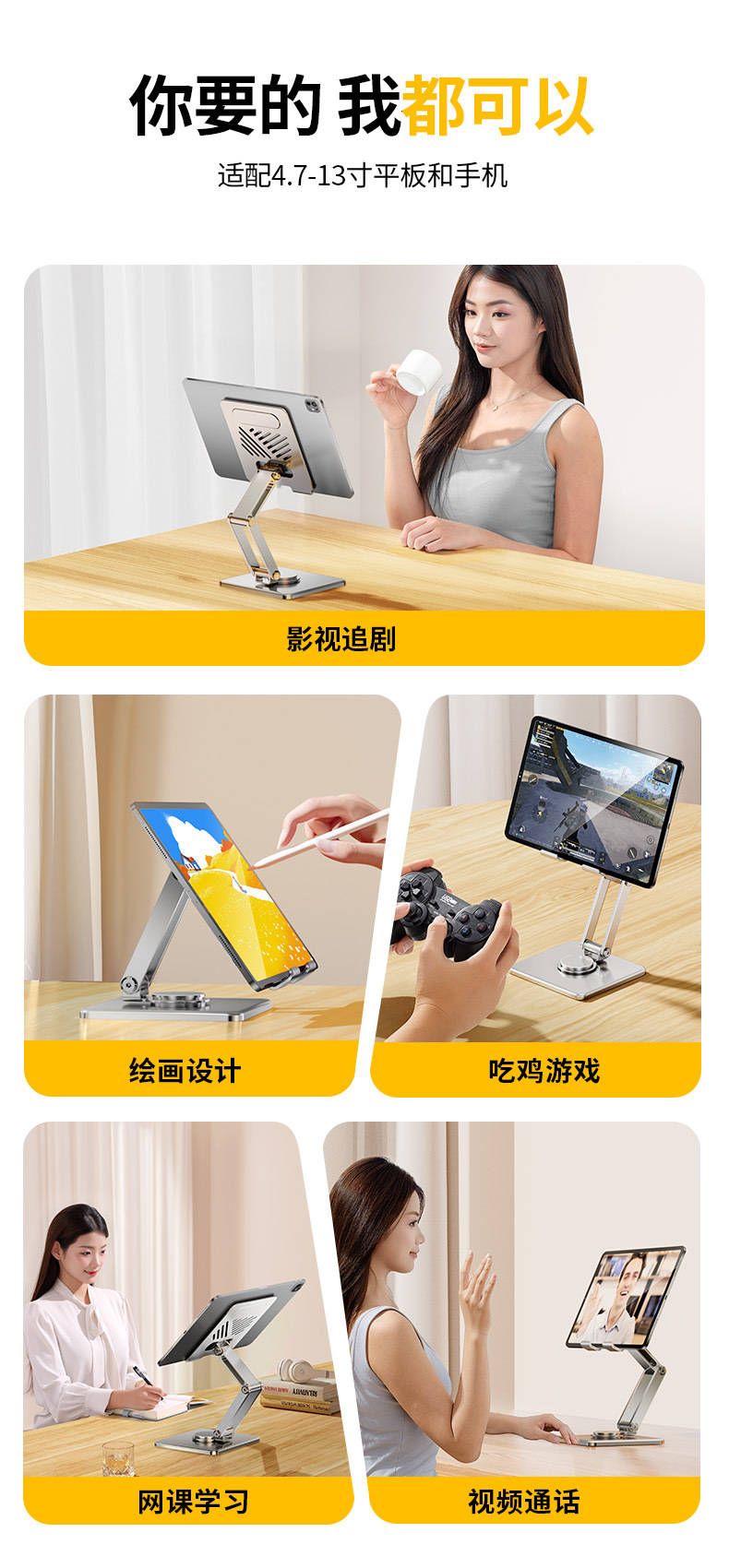 Ipad 태블릿 지원 프레임 게으른 데스크탑 도매에 적합한 다기능 휴대 전화 홀더 360 회전 휴대용 접이식