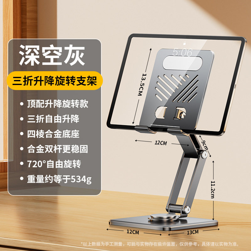 • [리프팅 및 회전 기능이 있는 상단 버전] 회색 + 전체 합금으로 제작 [ 70% off 리프팅/720 ° 회전/접이식 수납/휴대폰 및 태블릿용 범용]