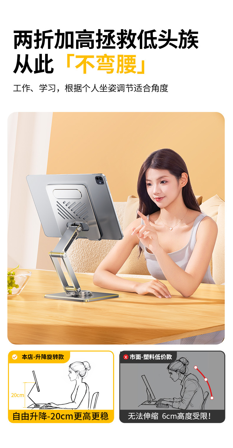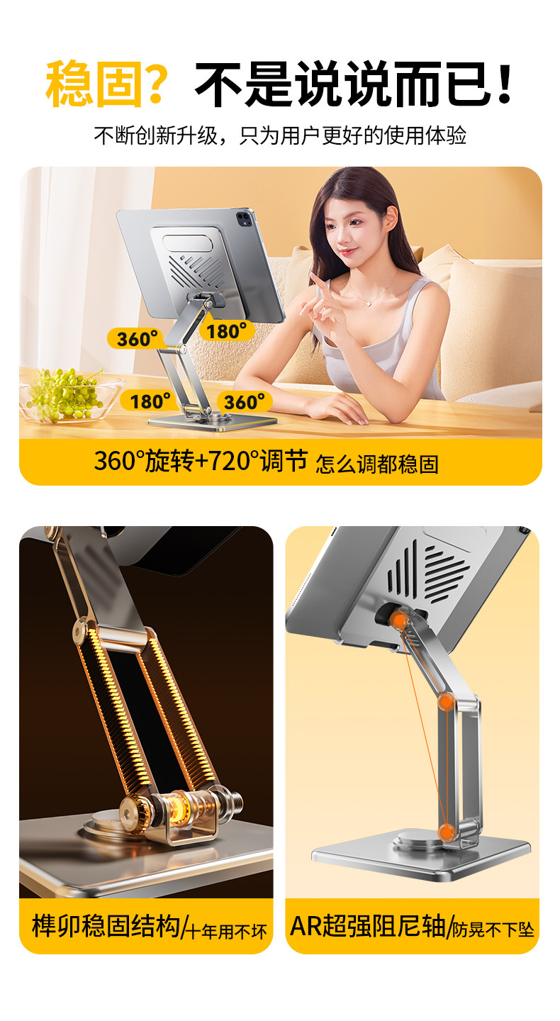 • [리프팅 및 회전 기능이 있는 상단 버전] 실버 + 전체 합금으로 제작 [ 70% off 리프팅/720°회전/접이식 수납/휴대폰 및 태블릿용 범용]