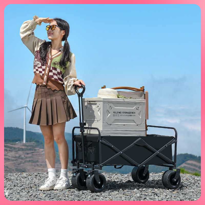 도매 금속 두꺼운 야외 캠핑카 캠핑카 캠핑 핸드 푸시 피크닉 트레일러 스톨 휴대용 트롤리스토어 가기