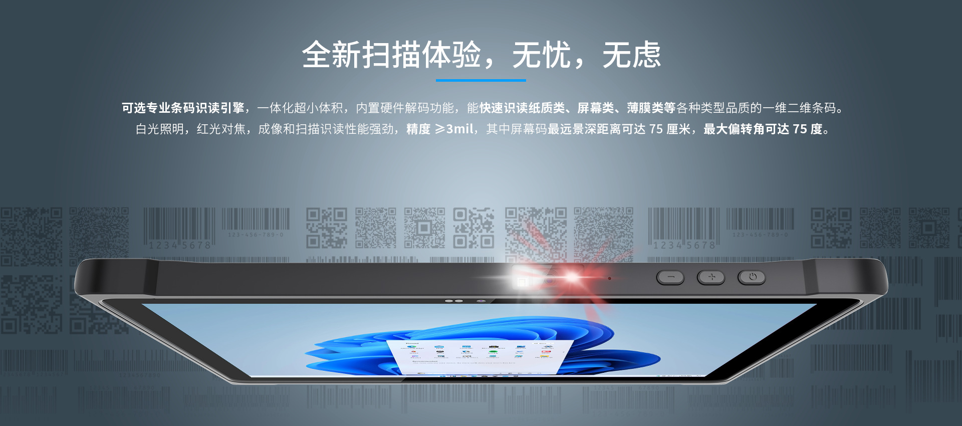 二维码 | 可选, 光学分辨率 (识别精度): ≥ 3密耳, 扫描速度: 75次/秒, 支持代码系统: 1D: 代码128,EAN-13,EAN-8,代码39,UPC-A,UPC-E, Codabar,交错2 of 5,ITF-6,ITF-14,ISBN,ISSN,代码 93,UCC/EAN-128,GS1数据库,矩阵2,共5,代码11, 工业2/5,标准2/5,AIM128,普莱西, MSI_x005f_x005f_x005f_x005f_x0002_Psey 2D: PDF417,二维码,微二维码,数据矩阵 | |
