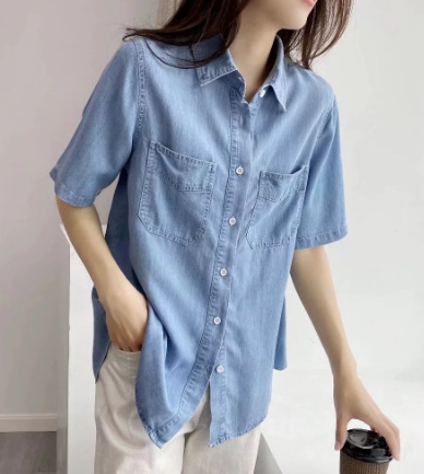 봄 새로운 얇은 데님 셔츠 여성 한국식 느슨한 캐주얼 셔츠 탑스토어 가기