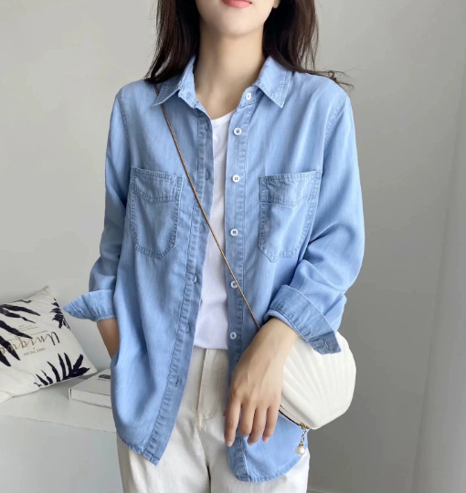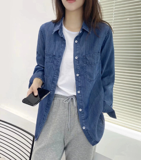 봄 새로운 얇은 데님 셔츠 여성 한국식 느슨한 캐주얼 셔츠 탑