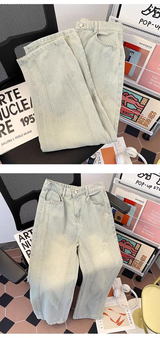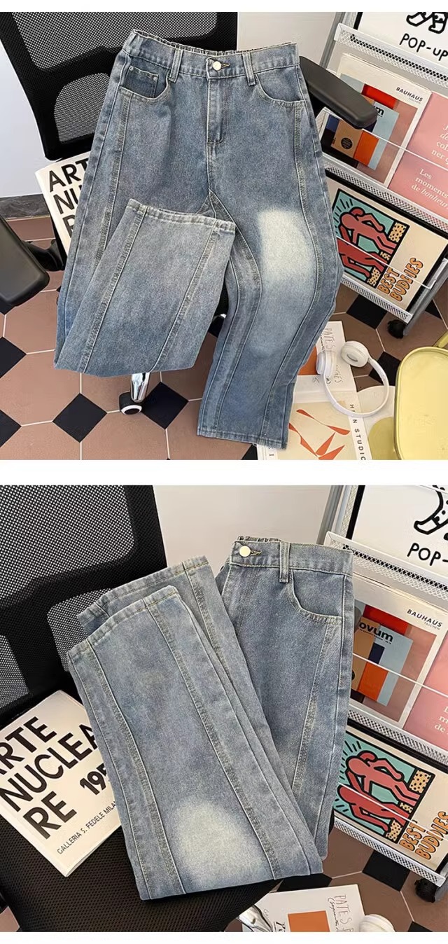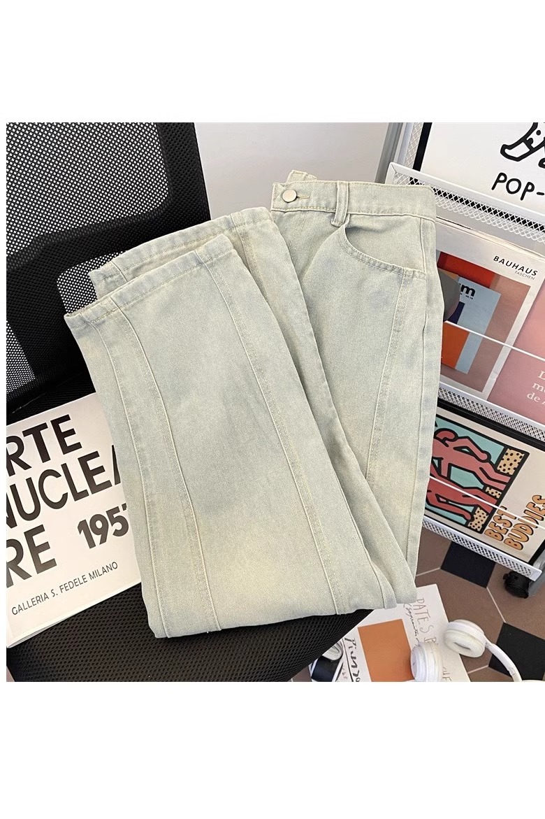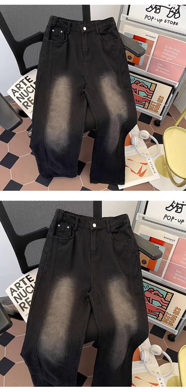 세척 된 해체 된 스트레이트 청바지 남성 봄과 가을 미국 복고풍 클린 핏 느슨한 오래된 캐주얼 긴 바지스토어 가기