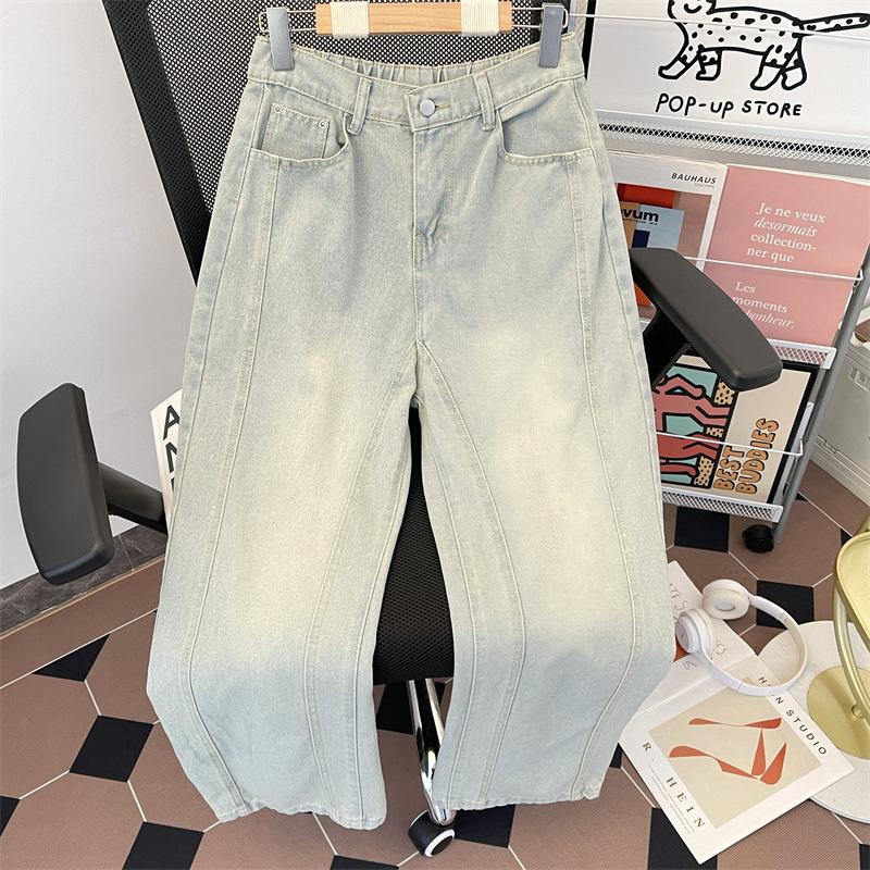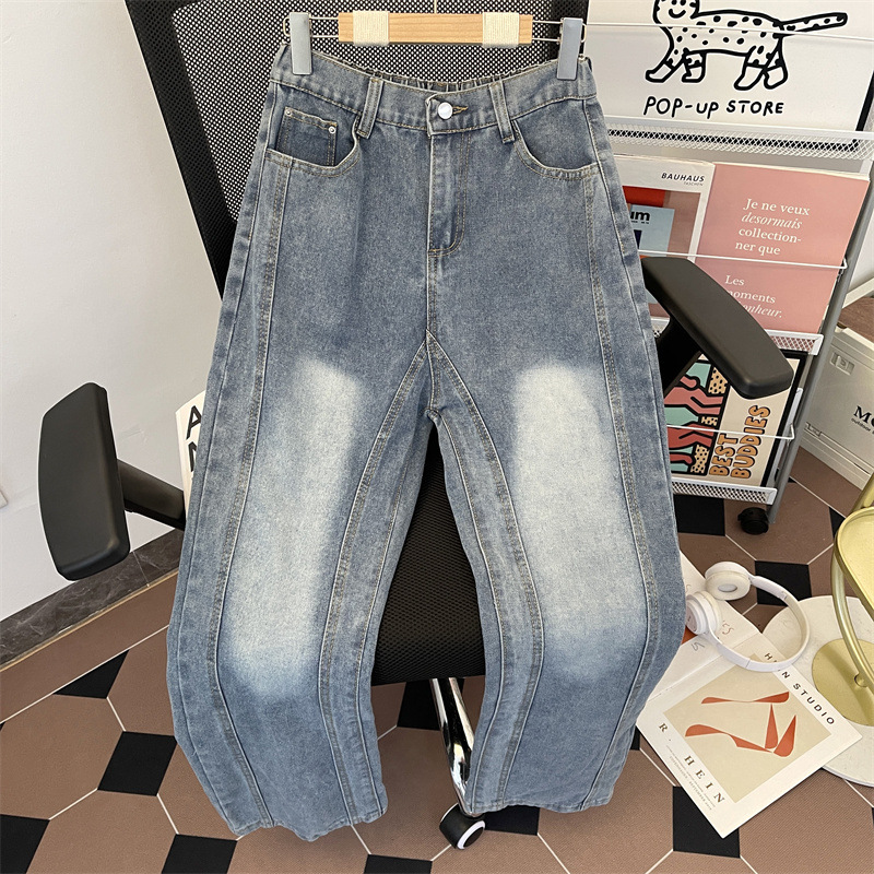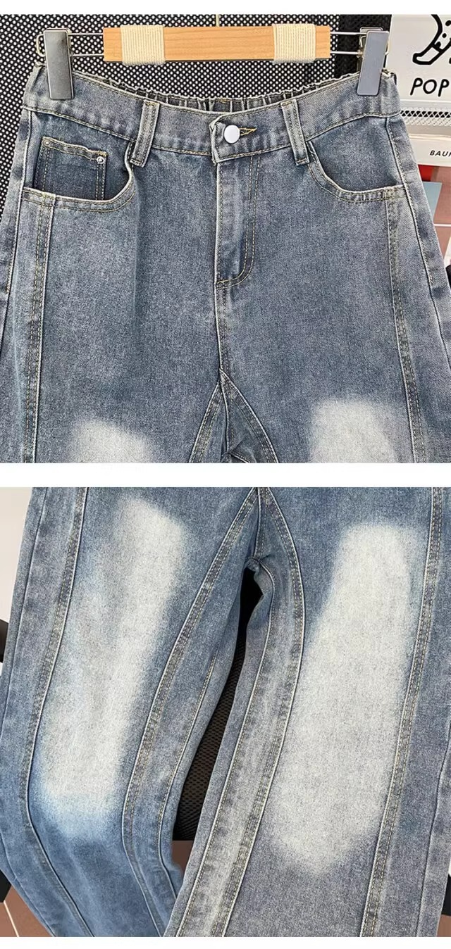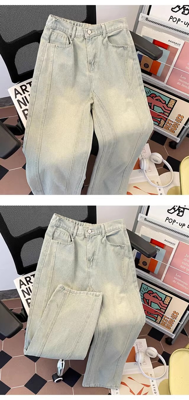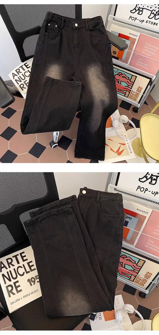 세척 된 해체 된 스트레이트 청바지 남성 봄과 가을 미국 복고풍 클린 핏 느슨한 오래된 캐주얼 긴 바지스토어 가기