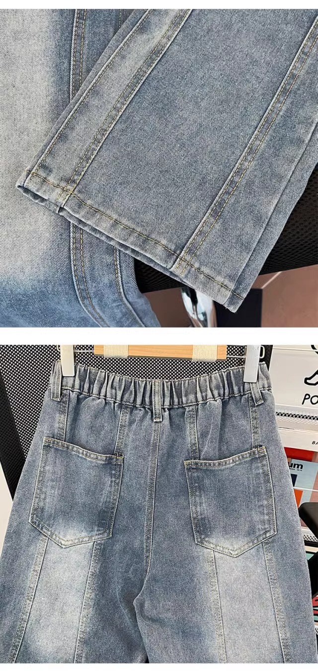 세척 된 해체 된 스트레이트 청바지 남성 봄과 가을 미국 복고풍 클린 핏 느슨한 오래된 캐주얼 긴 바지