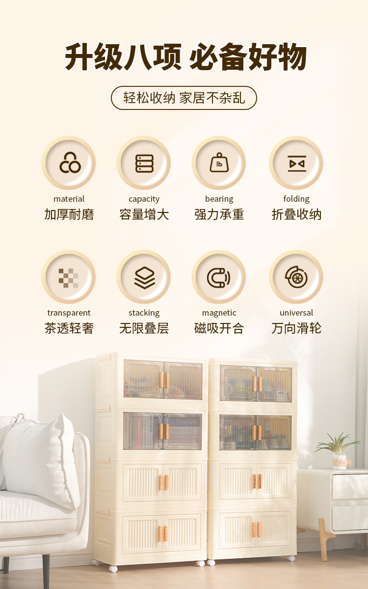 설치가 필요없는 접이식 보관 캐비닛 플라스틱 보관 상자 주방 홈 거실 스낵 장난감 보관 상자 침실 옷장