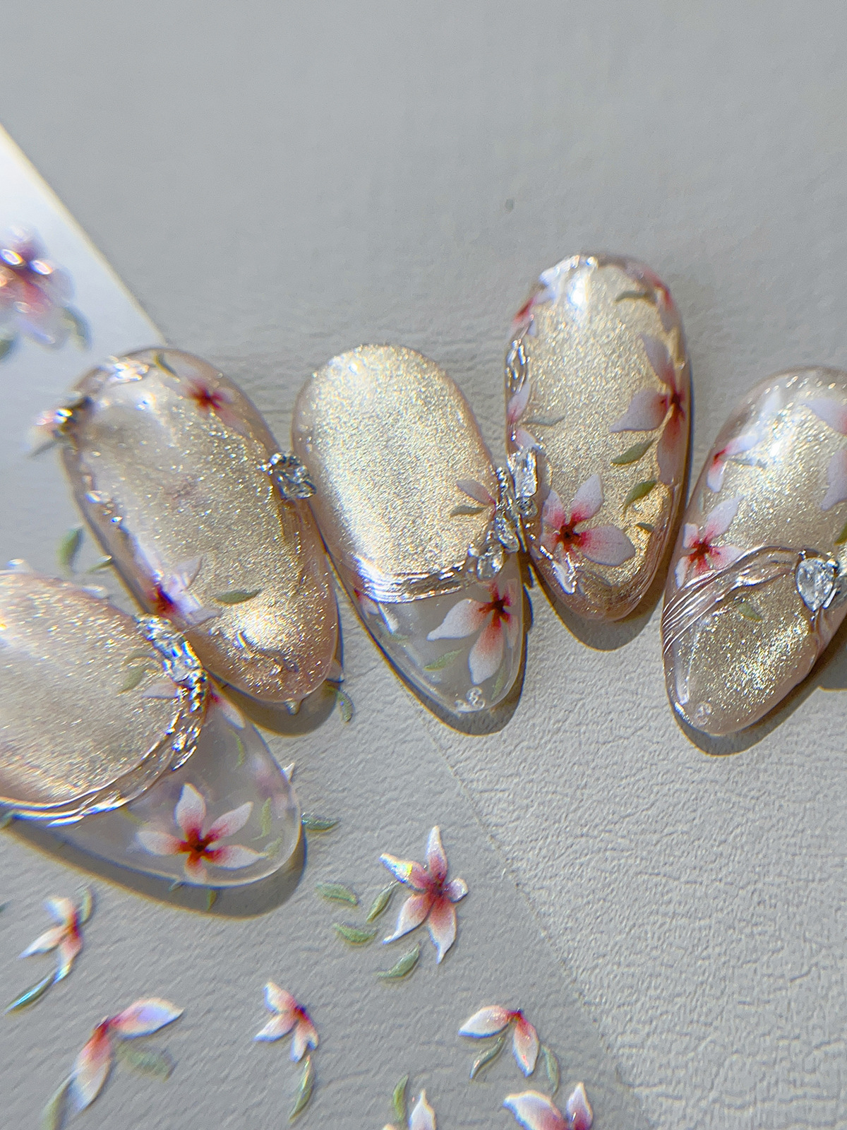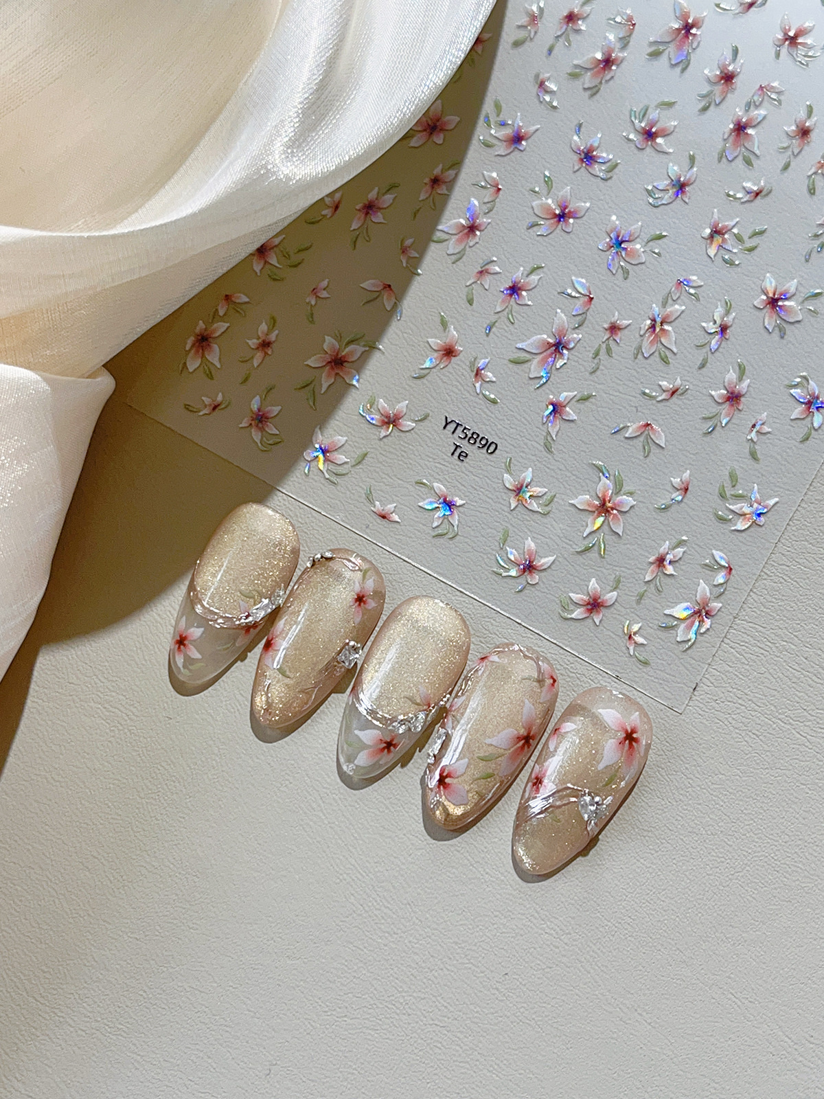 YITU 개미 쉘 빛 다섯 꽃잎 꽃 네일 아트 스티커 깜박이는 귀여운 꽃 중국 스타일 장식 스티커 YT5890스토어 가기