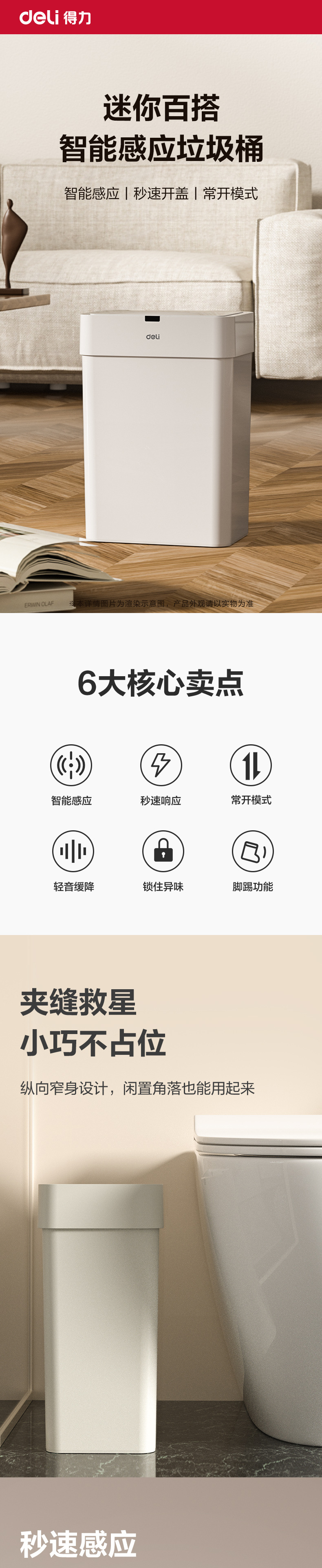 델리 PG620 스마트 센서 쓰레기통 가정용 욕실 전기 오픈 커버 거실 자동 센서 위생통스토어 가기