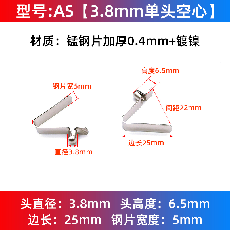 • AS: 3.8mm 단일 헤드 중공* 비드 높이 6.5, 길이 25mm