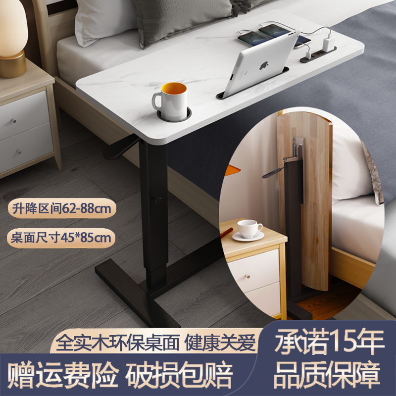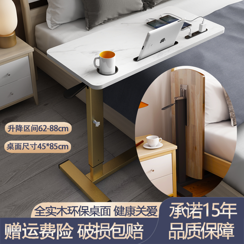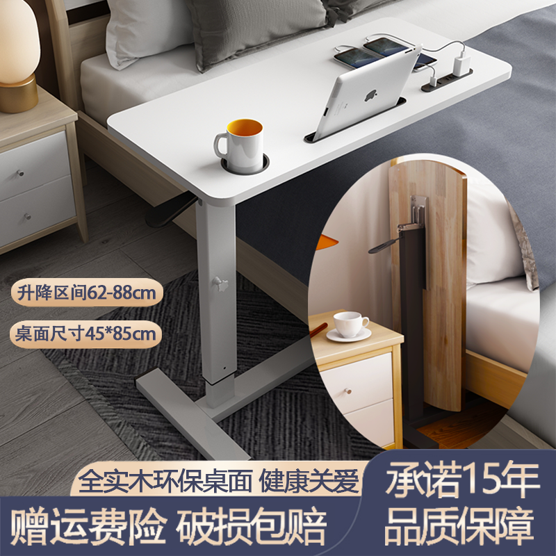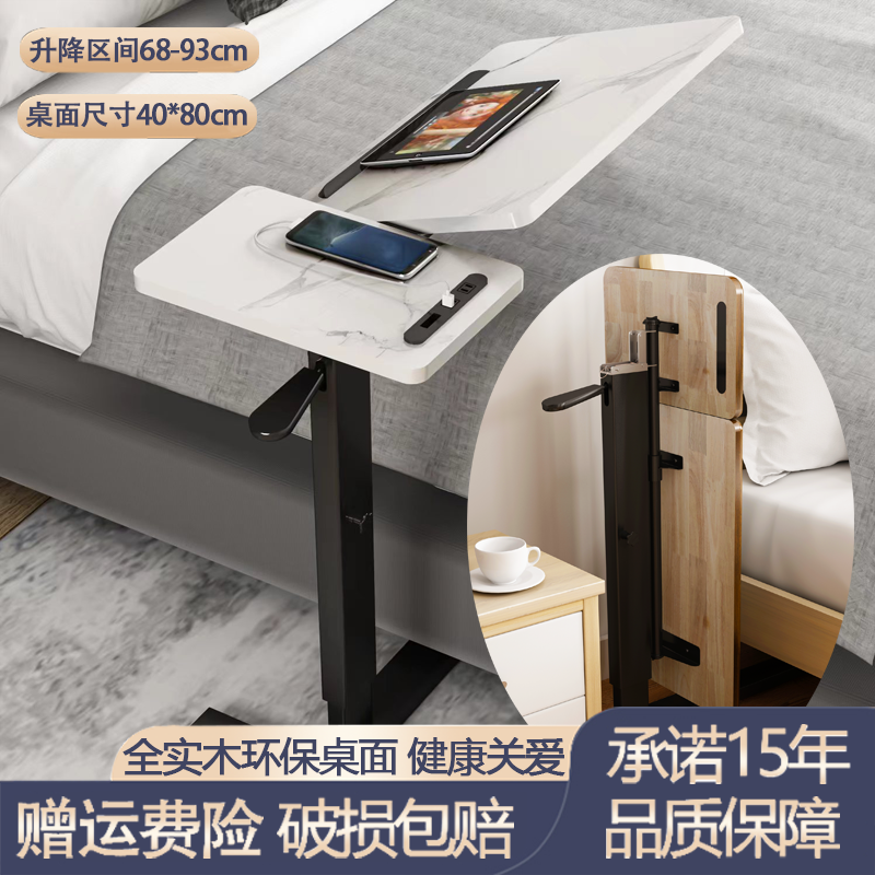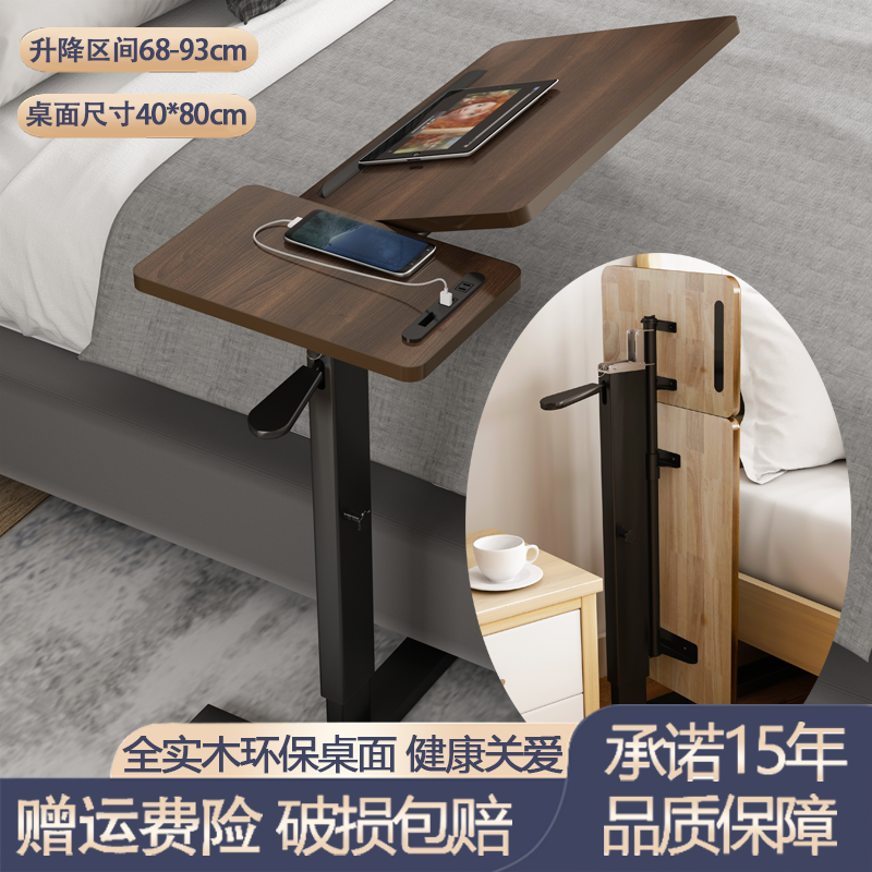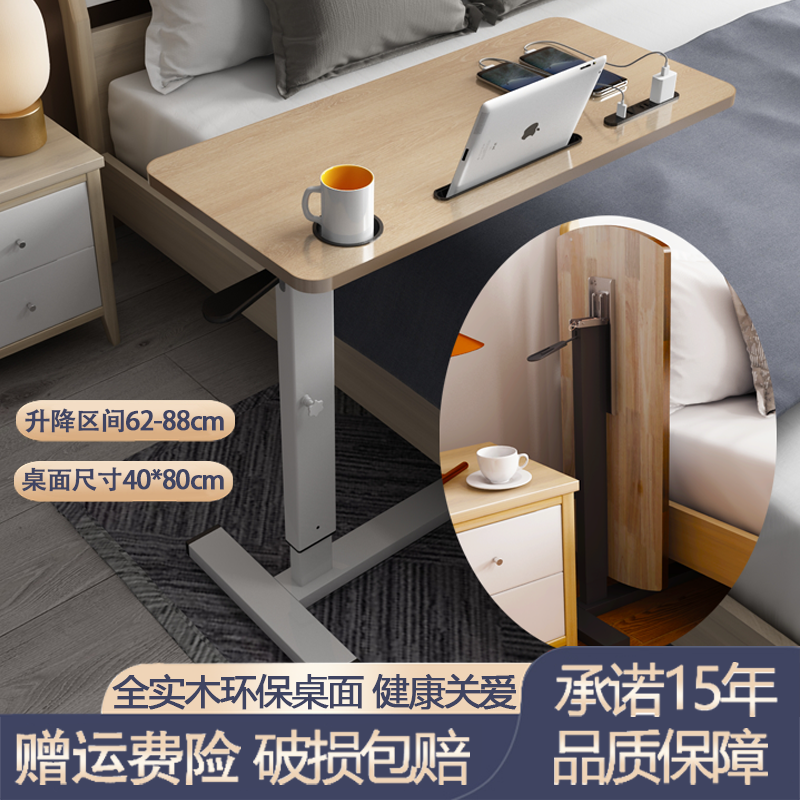 W7 단단한 나무 침대 옆 테이블 침대 책상 이동식 노트북 테이블 리프팅 접이식 학습 테이블 소파 사이드