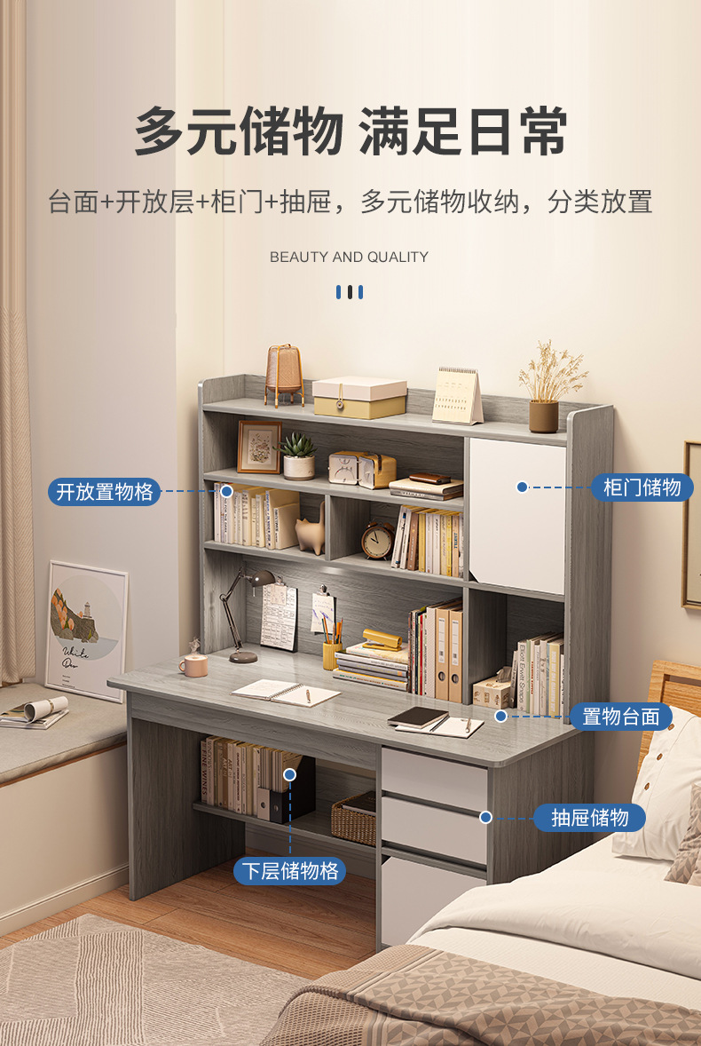 책상 책장 책이 있는 통합 테이블 카운터 스타일 컴퓨터 책상 홈 침실 학생 학습 테이블 쓰기 단단한 나무 의자