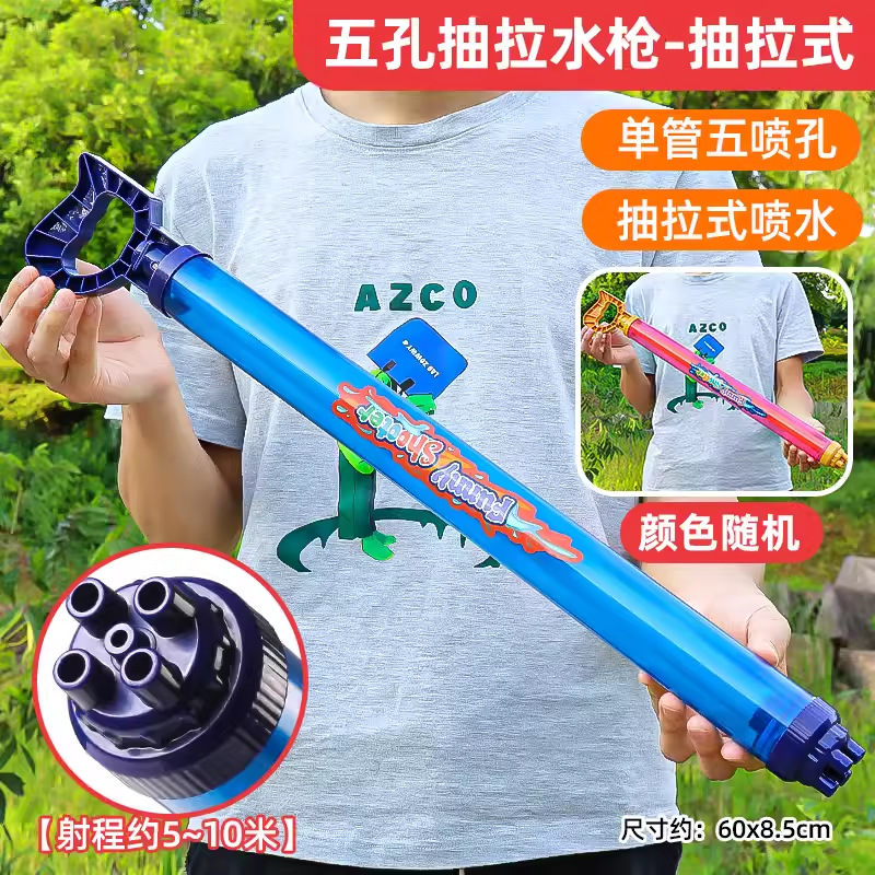 • 단일 튜브 5구 총 손잡이 인출식 물총 [색상 랜덤-싱글]
