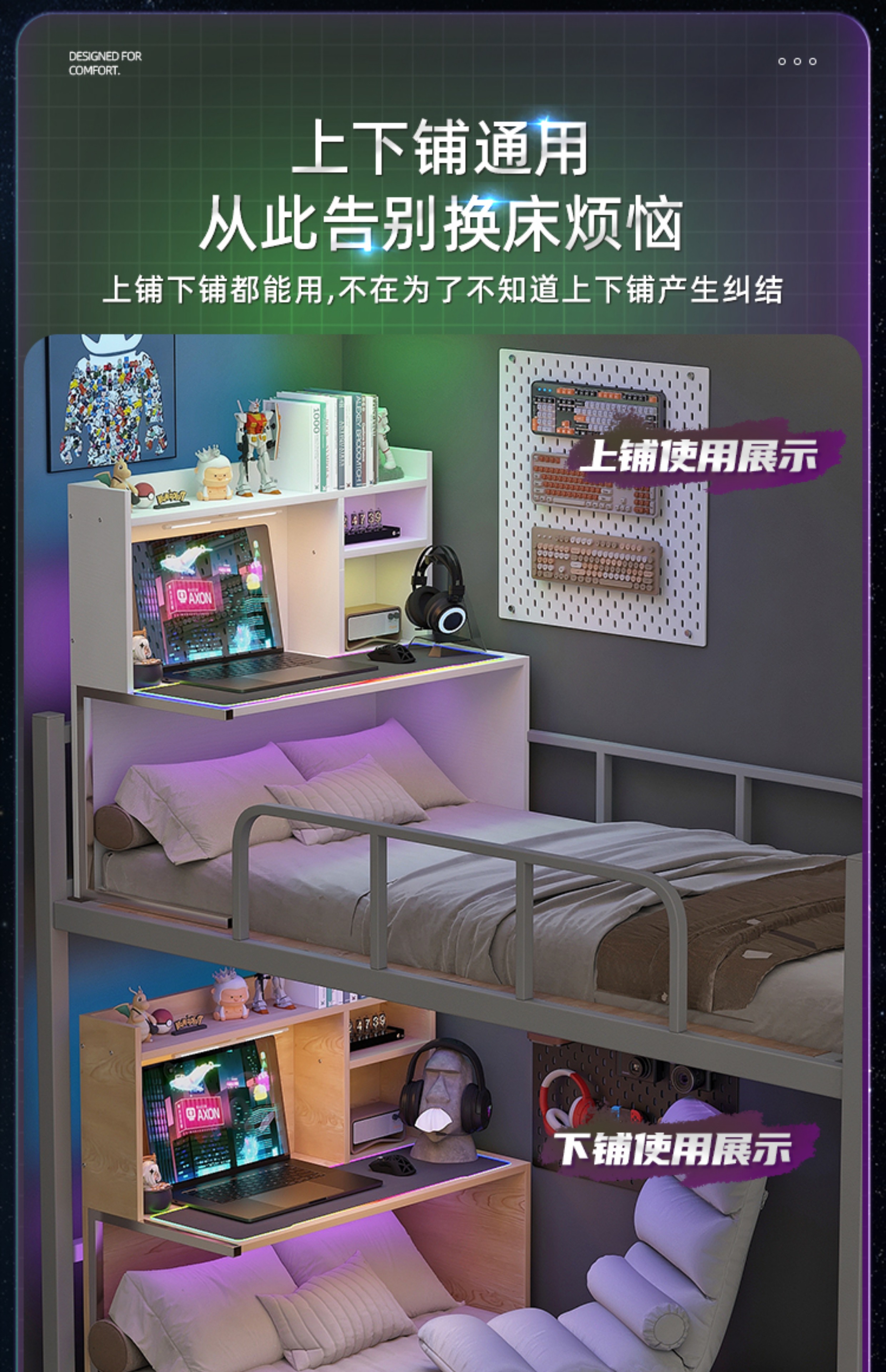 7W 기숙사 침대 테이블 침대 옆 테이블 대학생 침대 책상 이층 침대 공중 침실 게으른 테이블 침대 컴퓨터 테이블