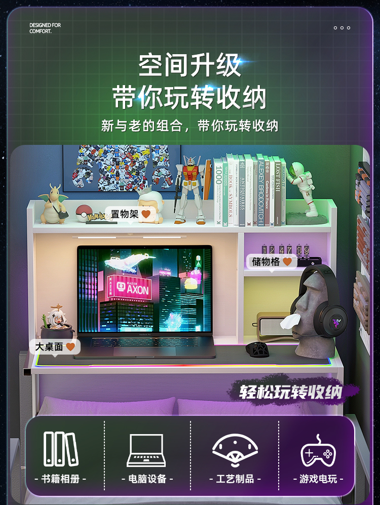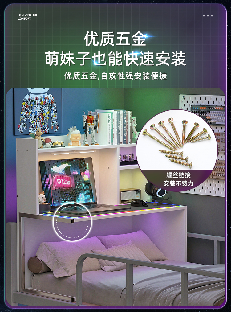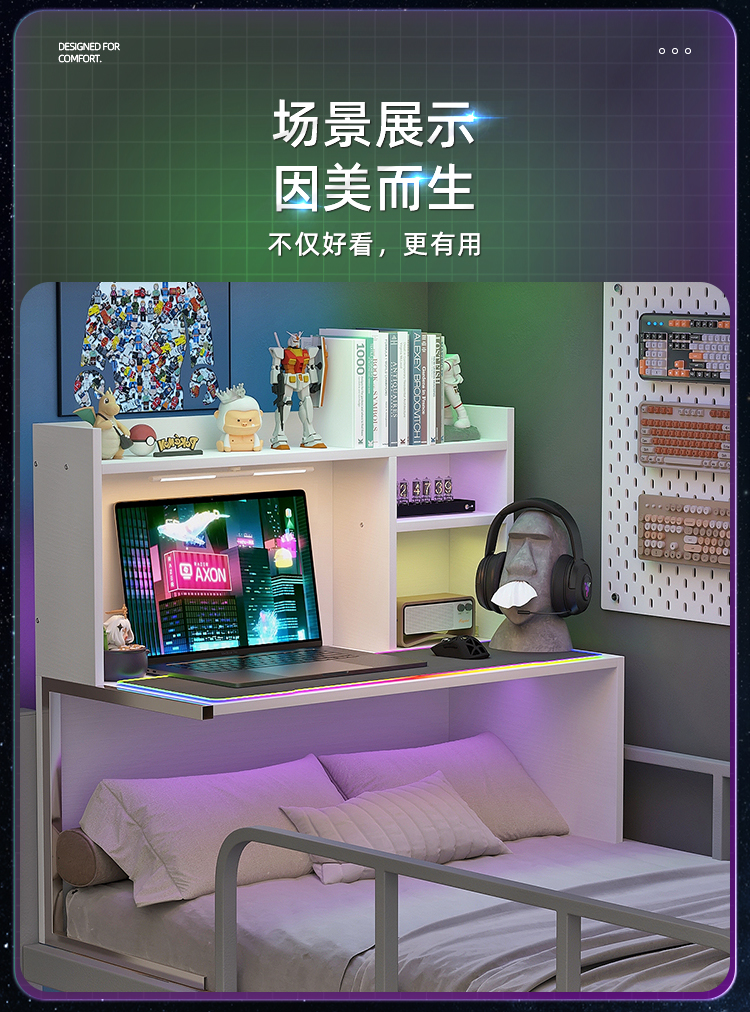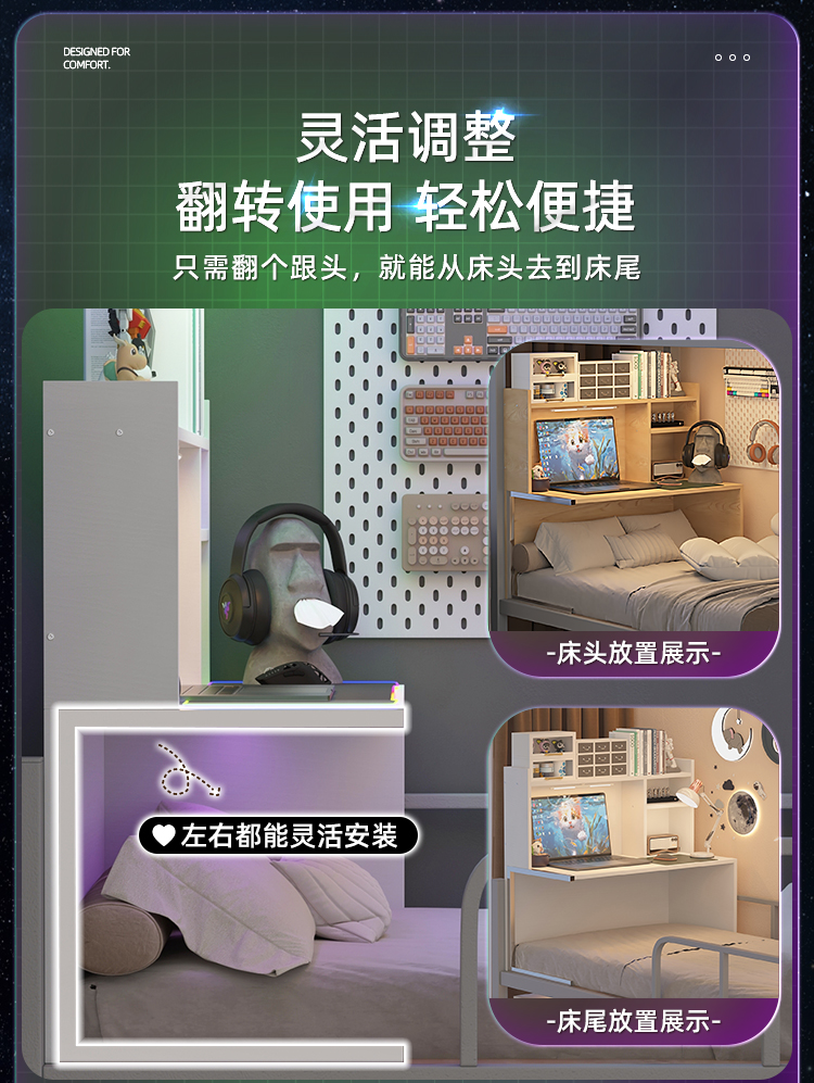 7W 기숙사 침대 테이블 침대 옆 테이블 대학생 침대 책상 이층 침대 공중 침실 게으른 테이블 침대 컴퓨터 테이블스토어 가기