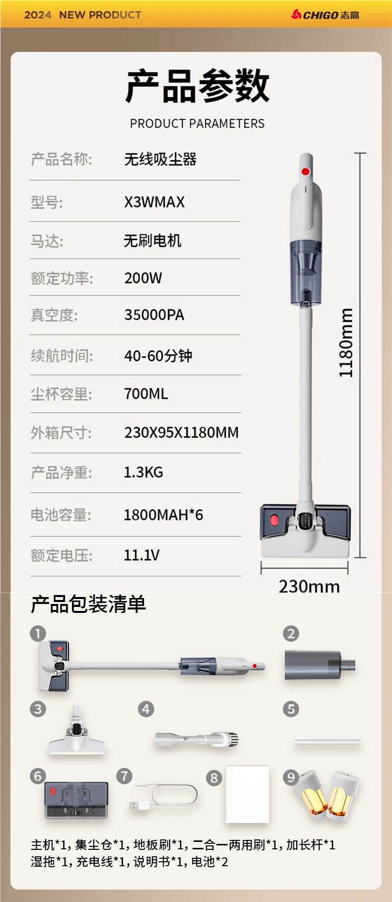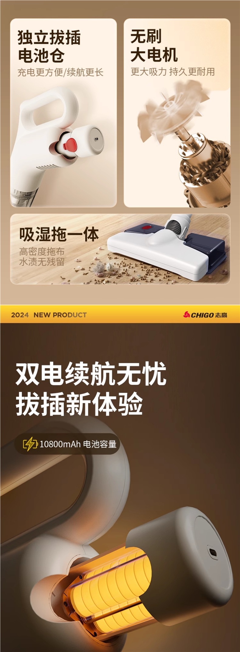 • 브러시리스 고급 버전 [브러시리스 모터] 듀얼 배터리 + 물걸레 물탱크 + 필터 요소