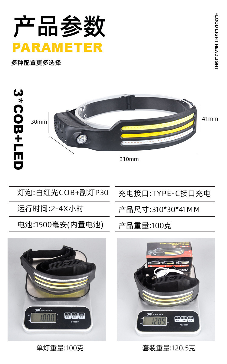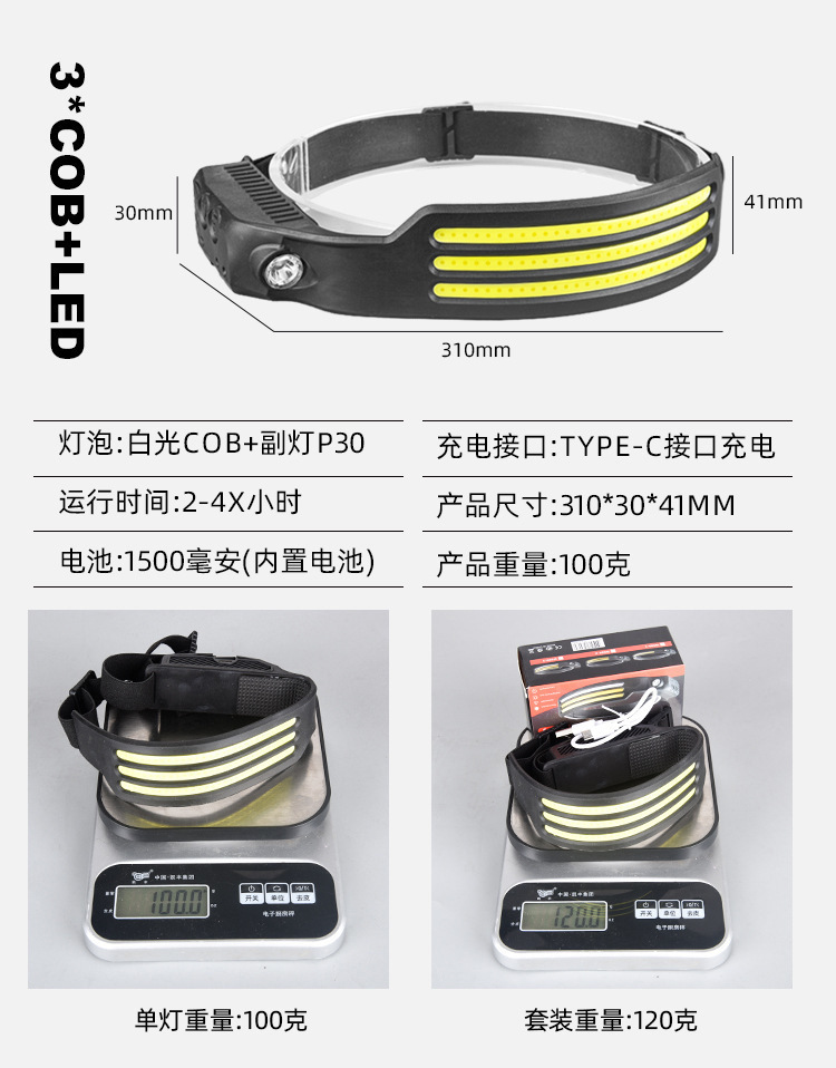 국경 간 다기능 유도 COB 헤드 라이트 야외 사이클링 헤드 라이트 USB 충전 야간 러닝 라이트 강한 빛 헤드 라이트 실리콘스토어 가기