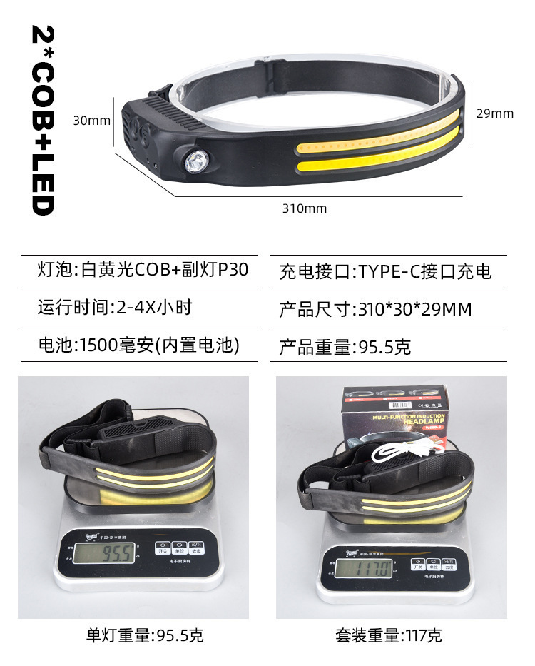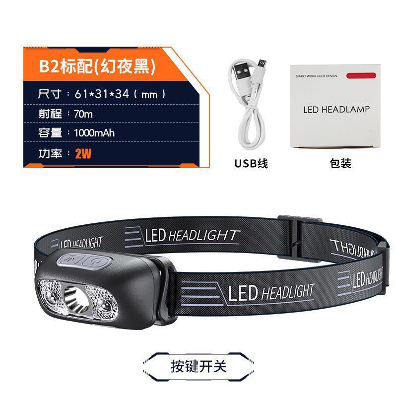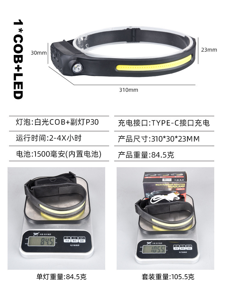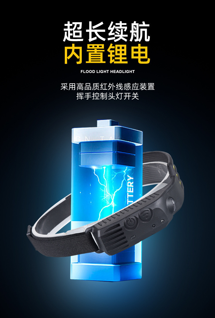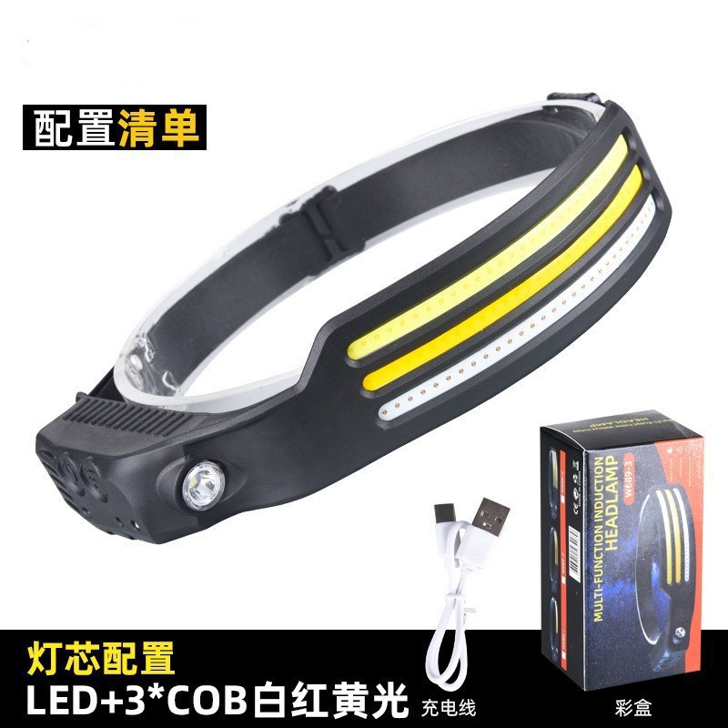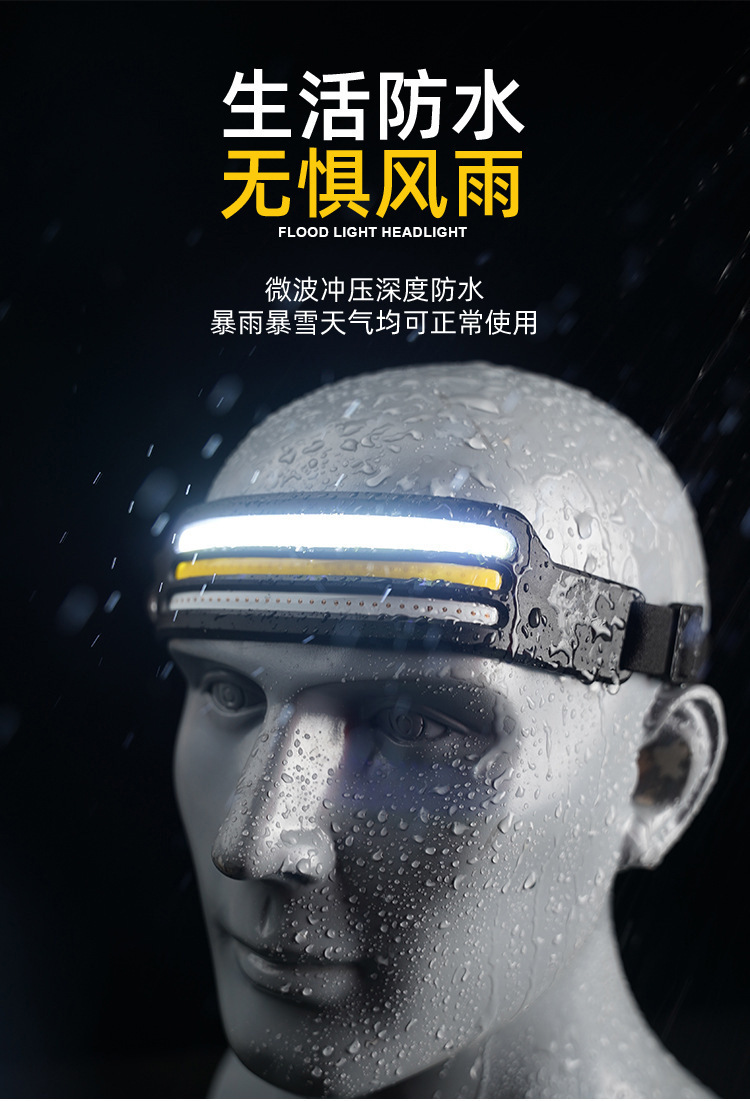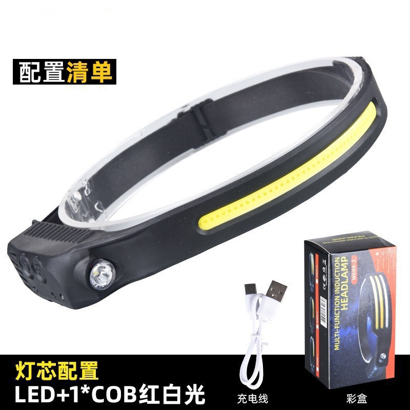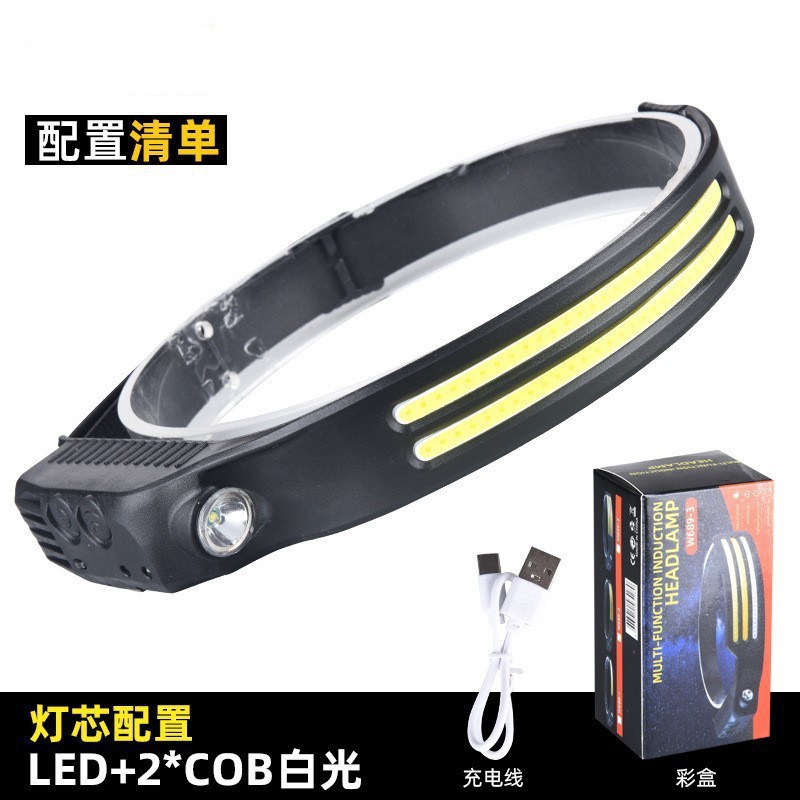 국경 간 다기능 유도 COB 헤드 라이트 야외 사이클링 헤드 라이트 USB 충전 야간 러닝 라이트 강한 빛 헤드 라이트 실리콘