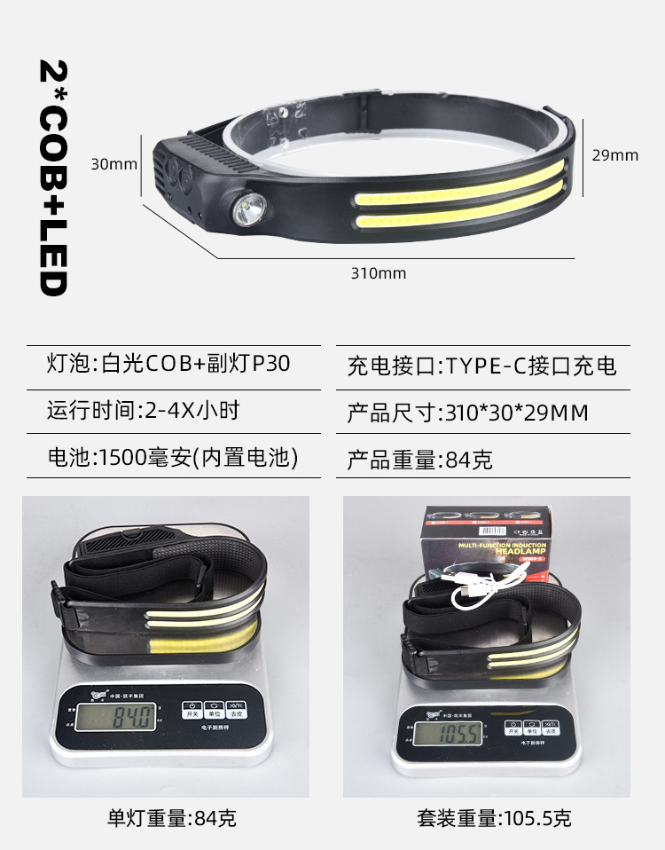 • 양면 조명 실리콘 유도 모델(XPE+COB 풀 백색광) 1000mah