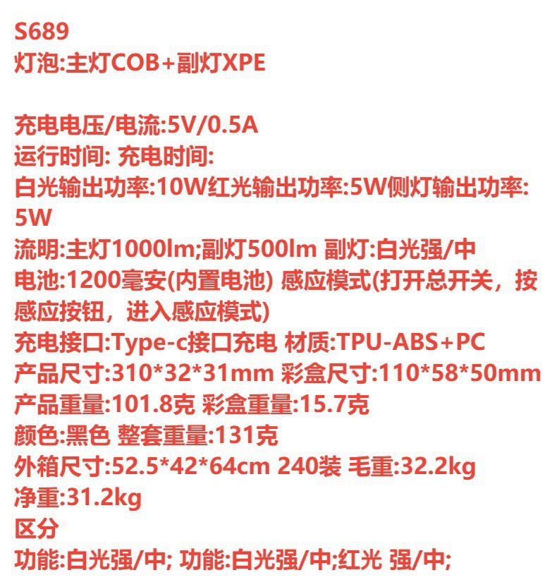 • S689-1 유도 모델 빨간색과 흰색 빛