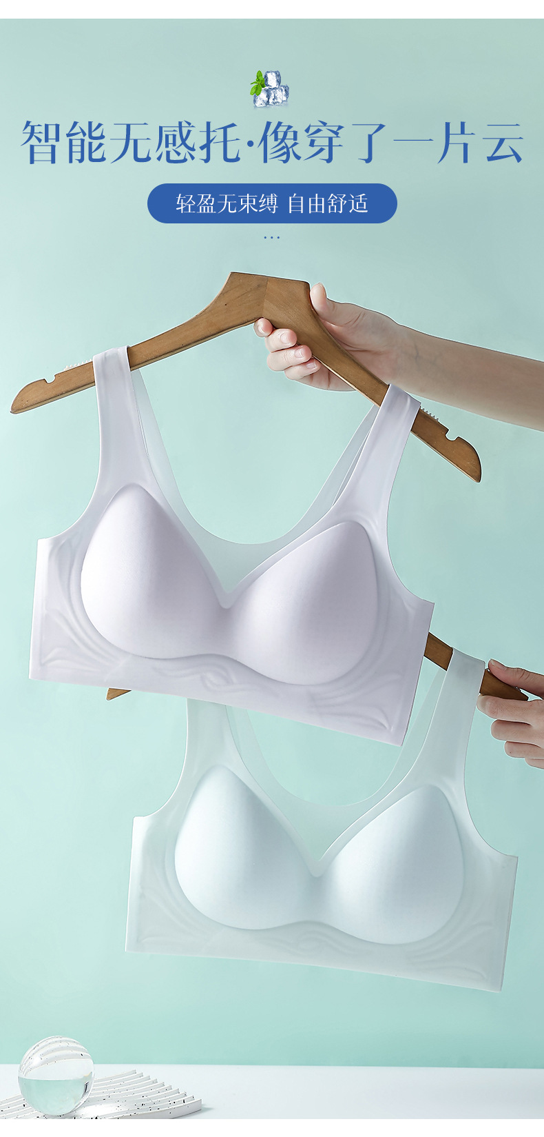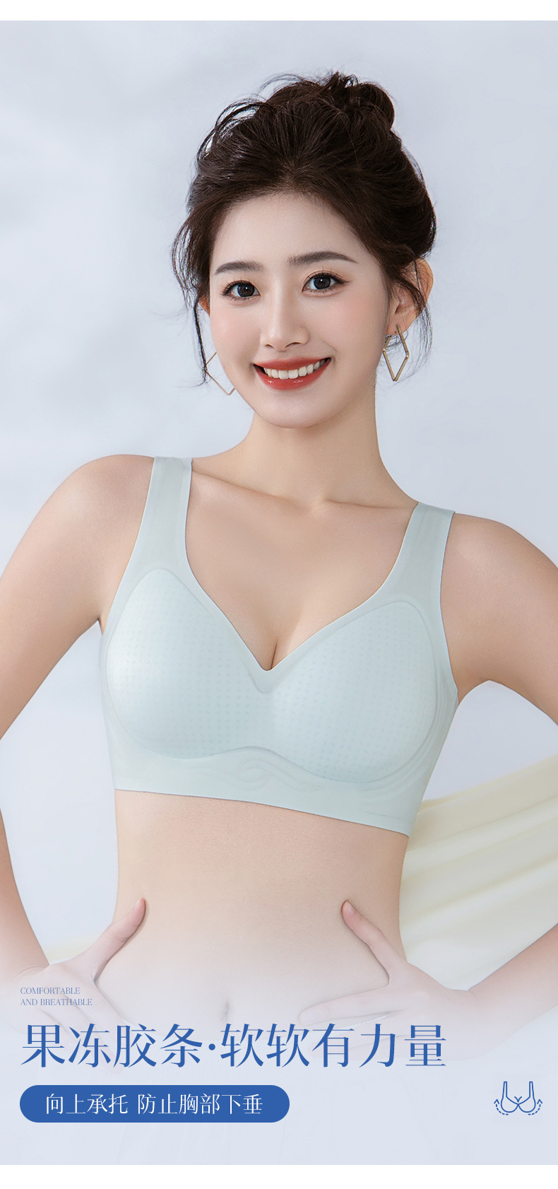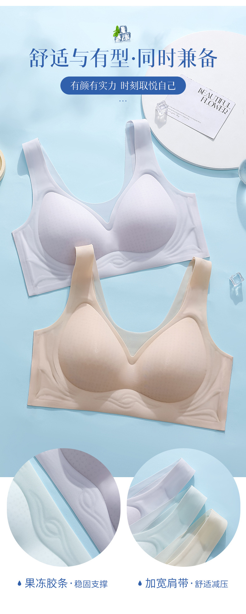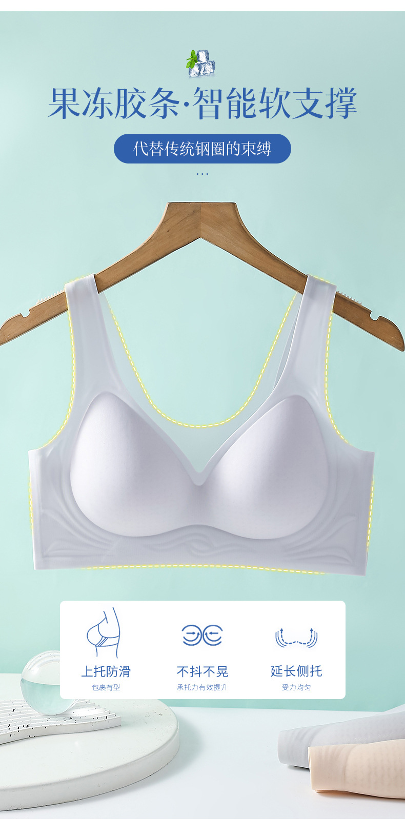 와이어프리 파운데이션 브라, 여성용 부드러운 지지력, 흔적 없는 편안한 스포츠 브라, 통기성 젤리컵 풀컵스토어 가기