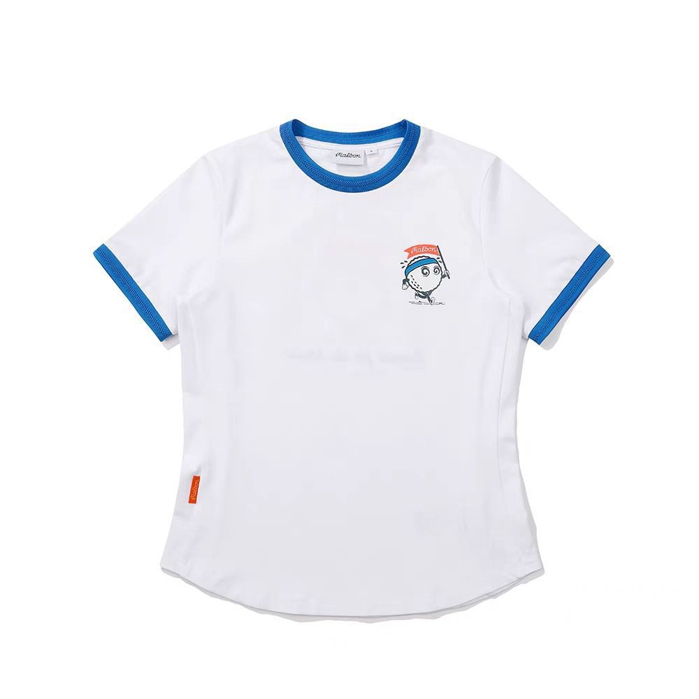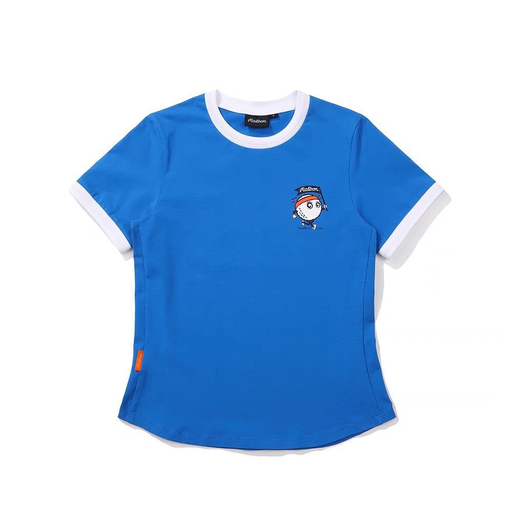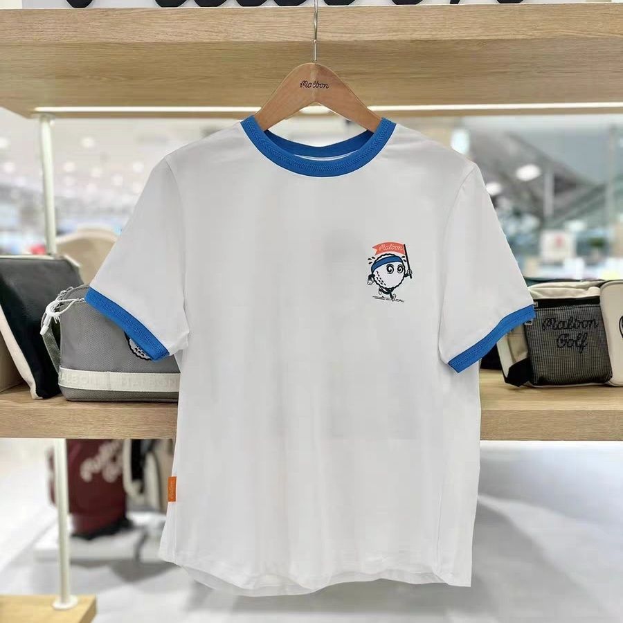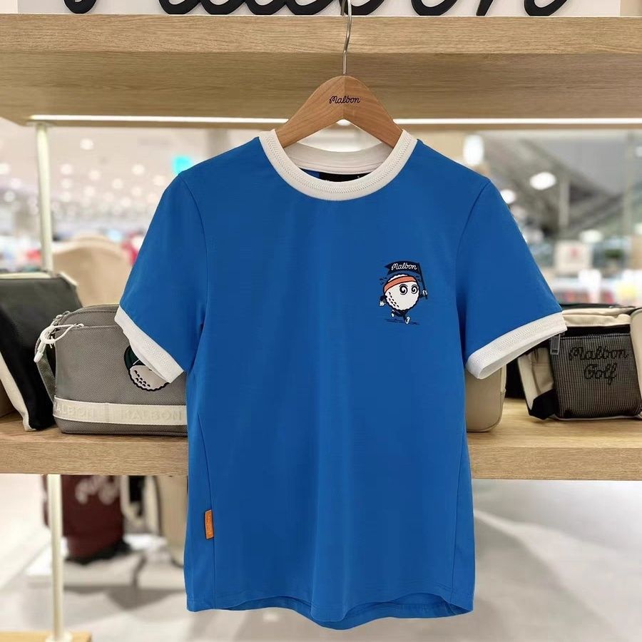 한국 MALBON 골프웨어 24 봄 여름 여성 GOLF 컬러 블록 로고 라운드 넥 슬림 반팔 티셔츠스토어 가기