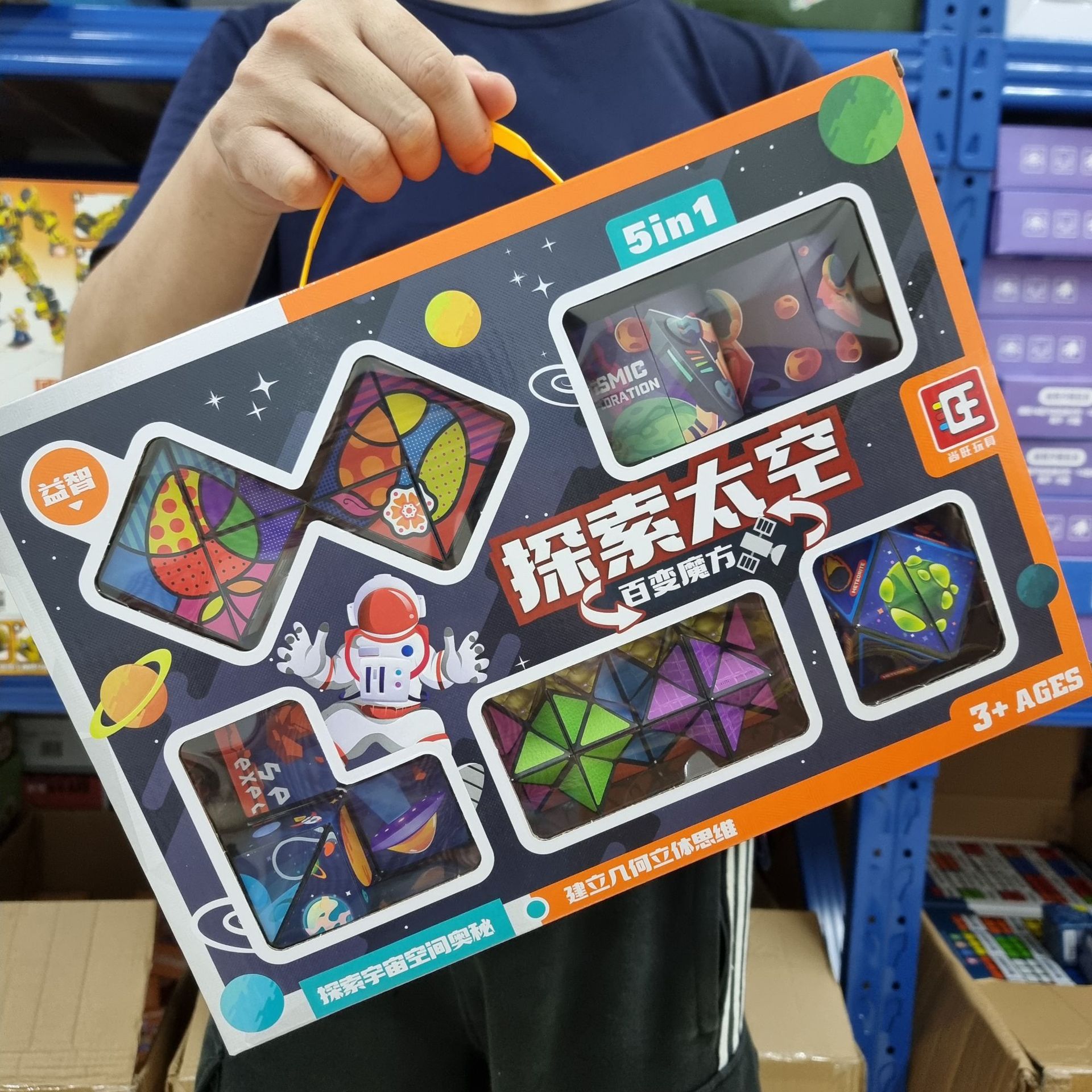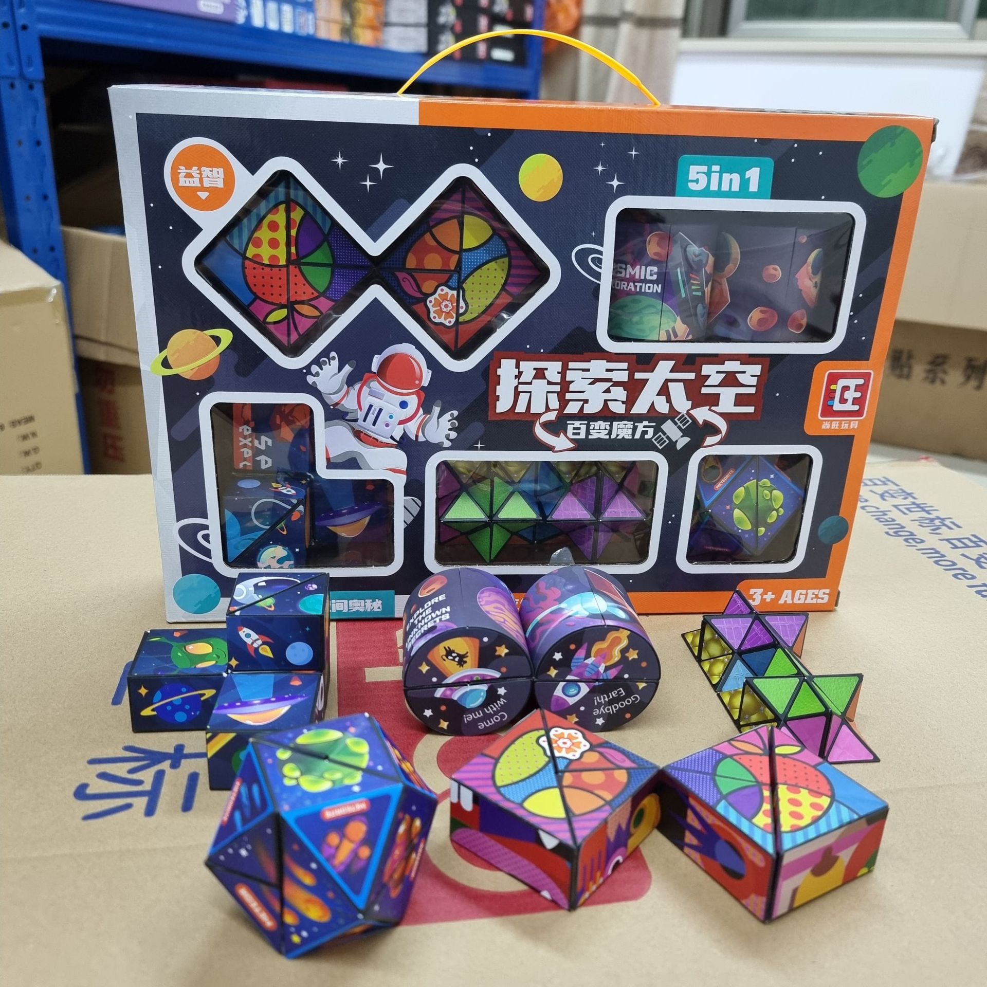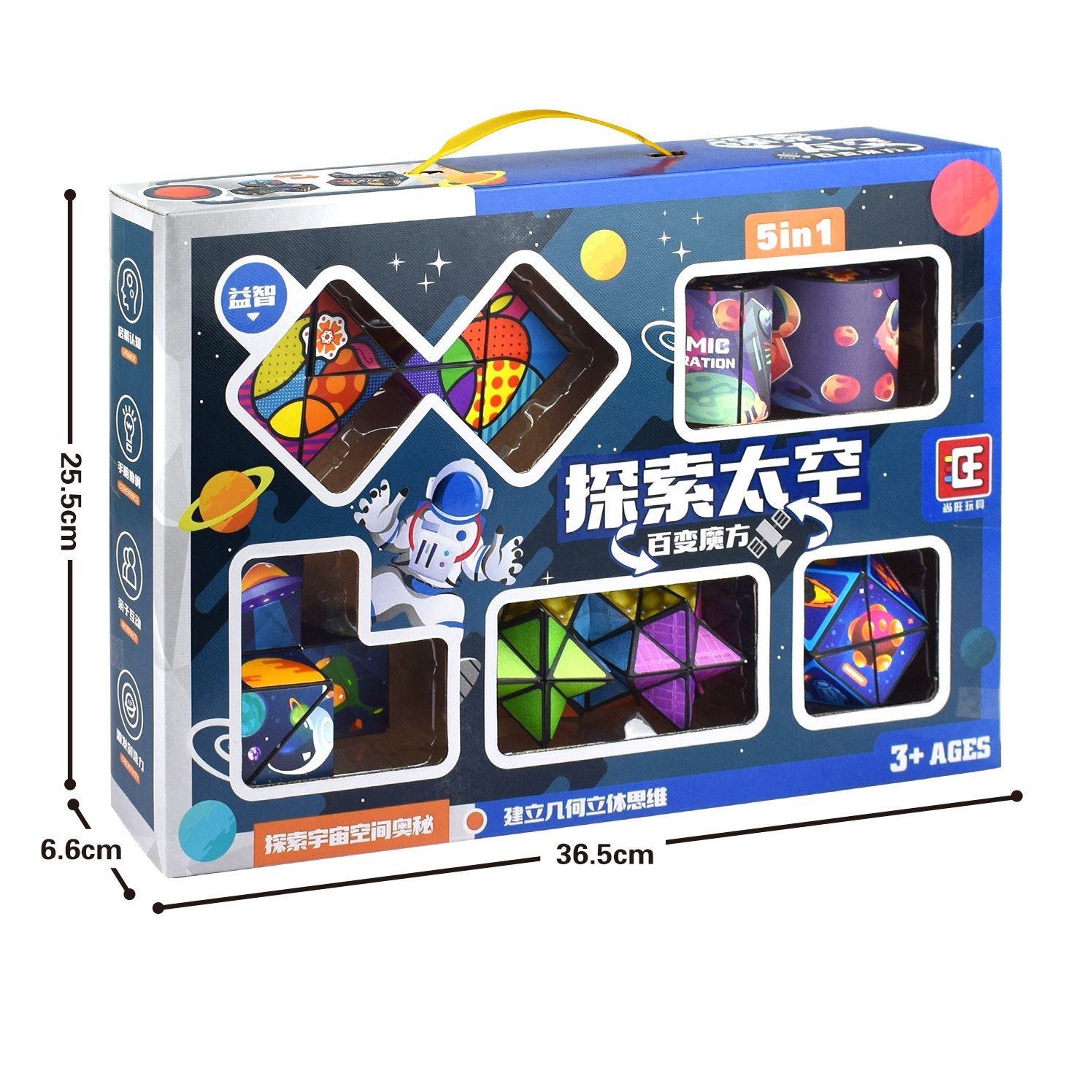 우주를 탐험하세요 무한 매직 큐브 5피스 선물 상자 3D 입체 기하학적 사고 훈련 어린이 장난감스토어 가기