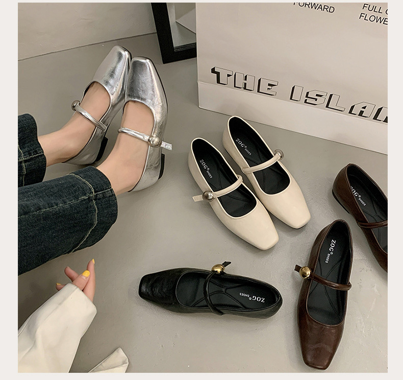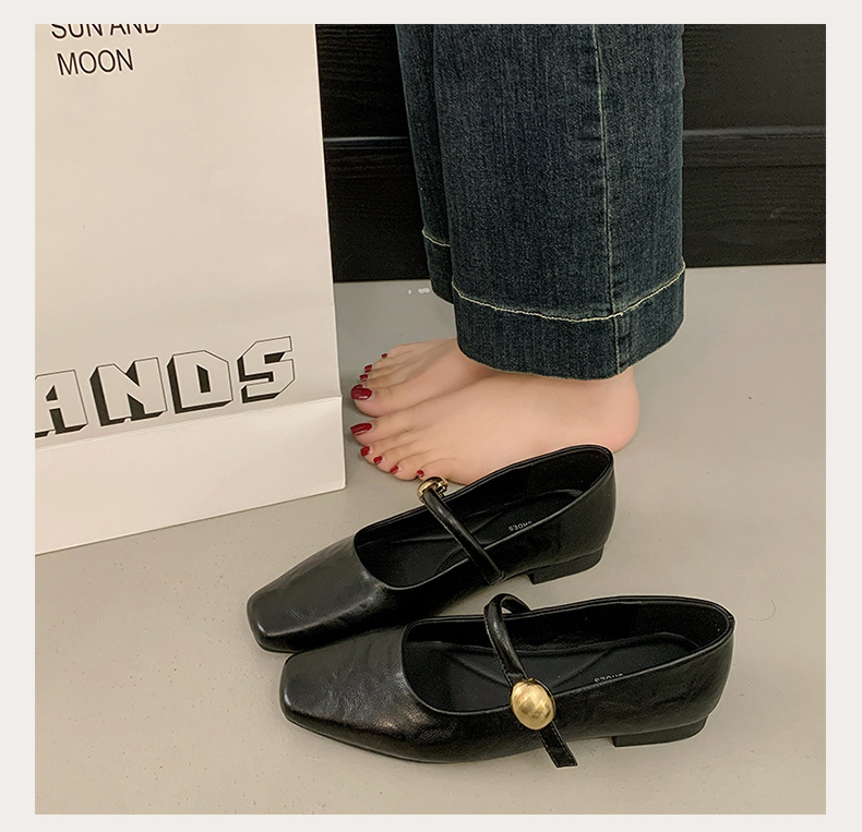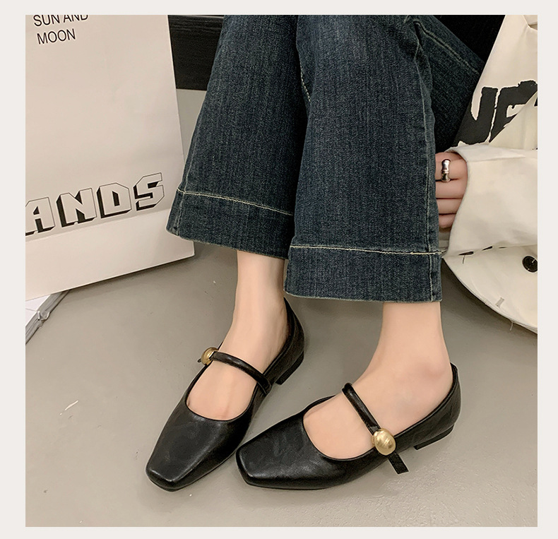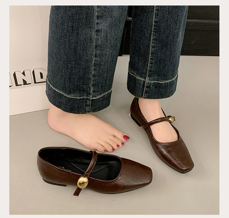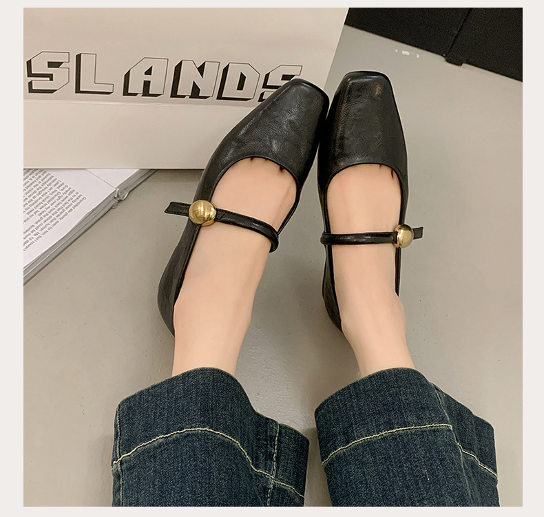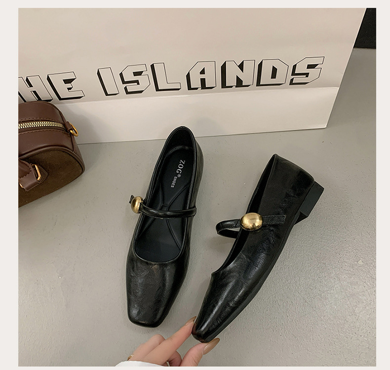 여성을위한 검은 색 싱글 신발 2025 새로운 봄, 여름 낮은 굽 플랫 작은 가죽 신발 스커트가있는 프랑스 메리 제인 여성 신발스토어 가기