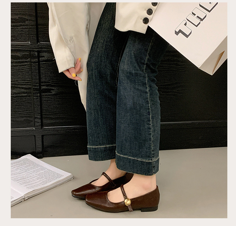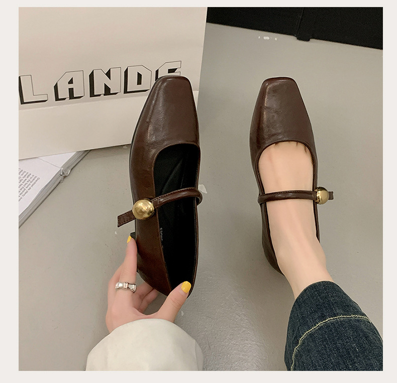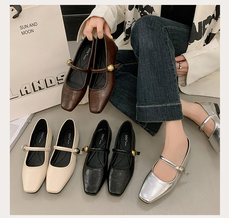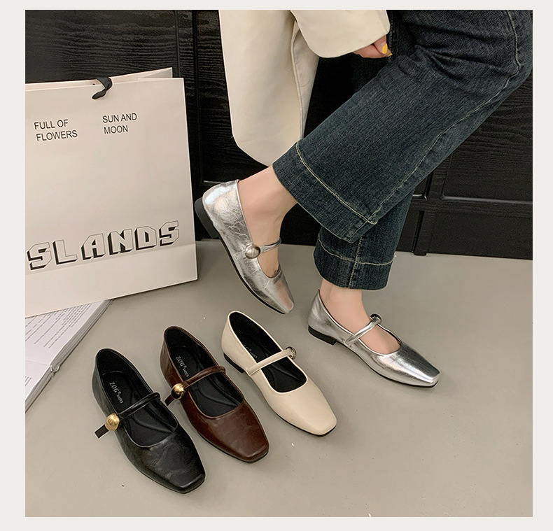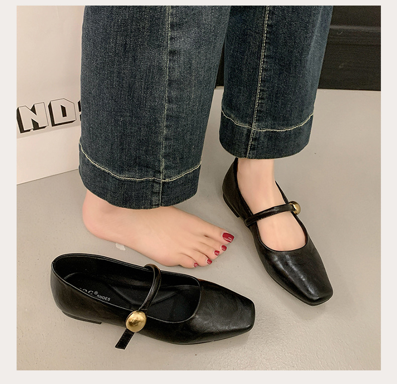 여성을위한 검은 색 싱글 신발 2025 새로운 봄, 여름 낮은 굽 플랫 작은 가죽 신발 스커트가있는 프랑스 메리 제인 여성 신발스토어 가기
