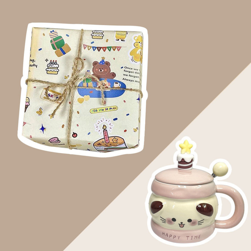 머그잔 소녀 마시는 컵 가정용 뚜껑이있는 스푼 컵 귀여운 강아지 세라믹 컵 기념품 생일