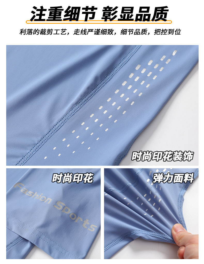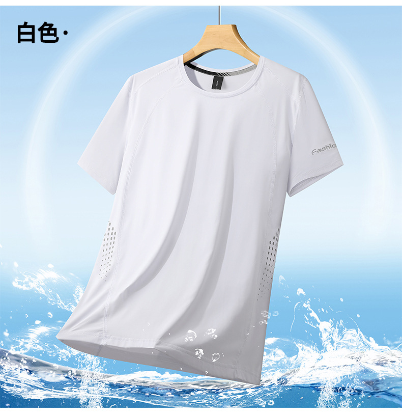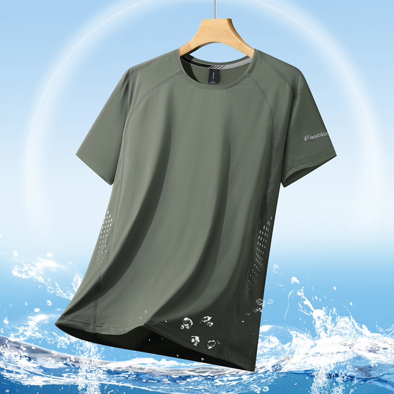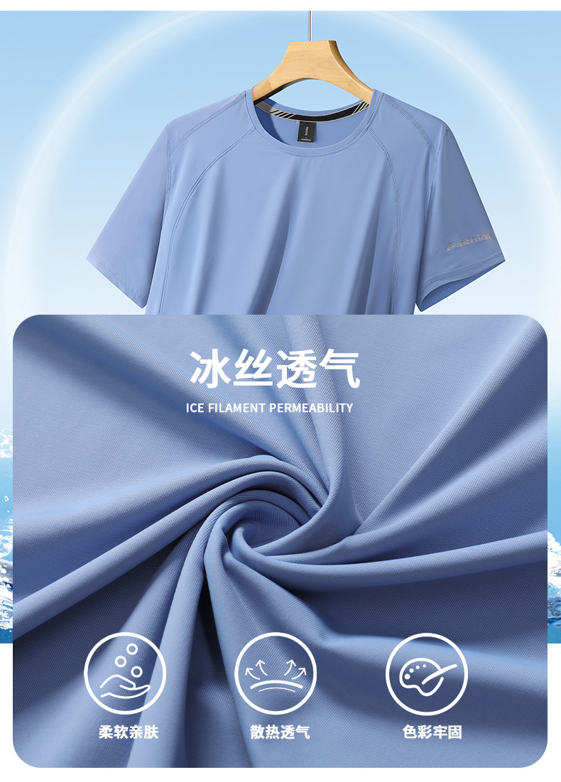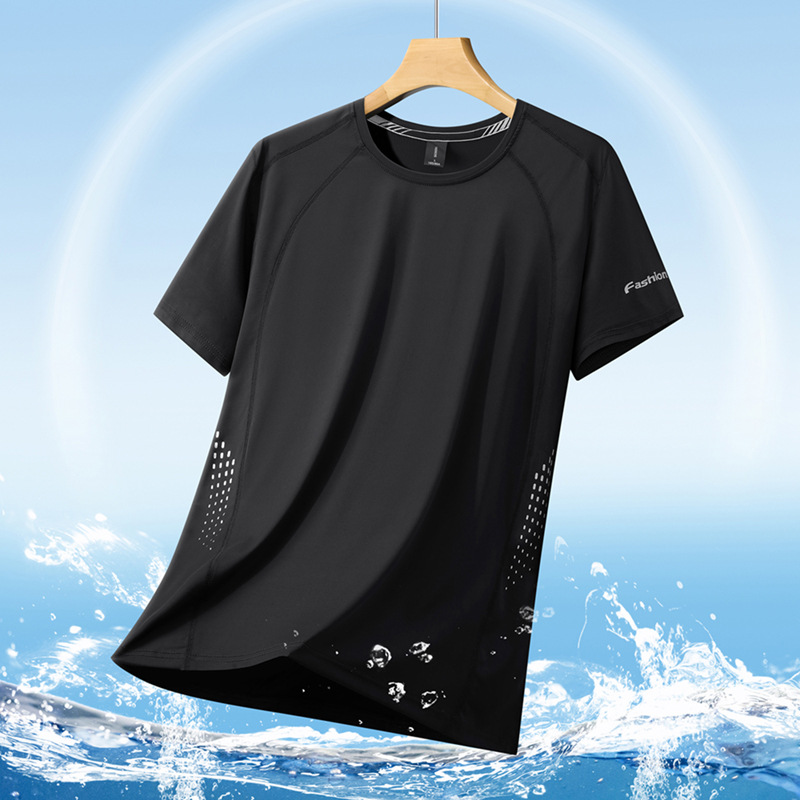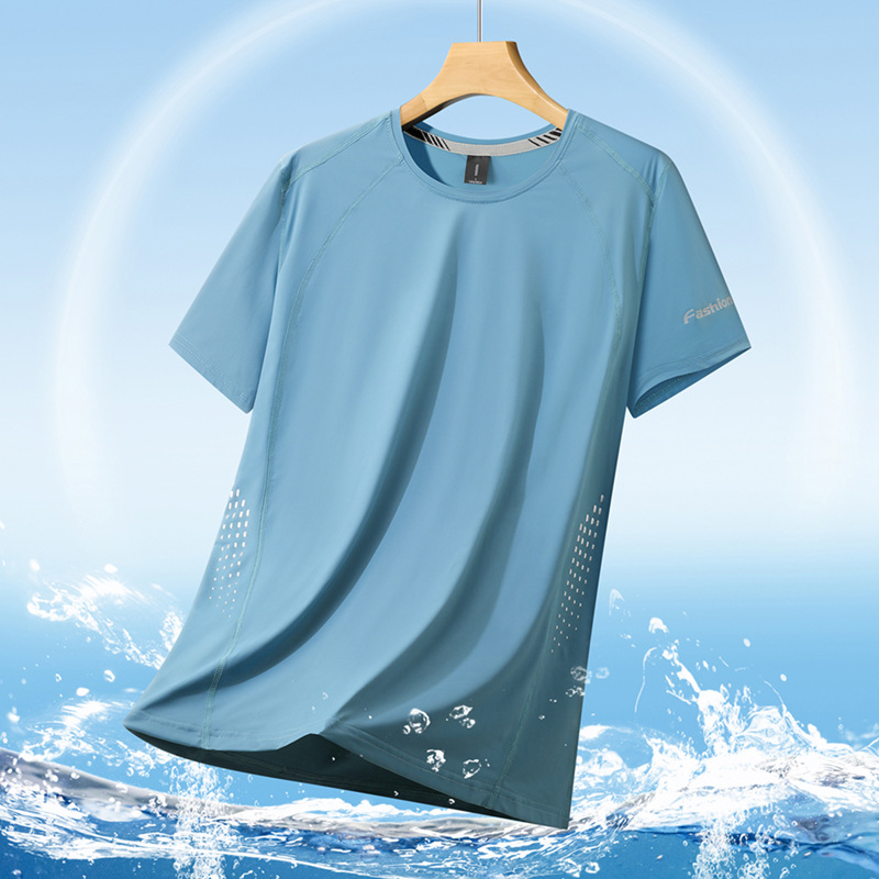 여름 아이스 실크 반팔 티셔츠 남자의 얇은 스포츠 피트니스 둥근 목 빠른 건조 옷 플러스 사이즈 느슨한 스트레치 통기성 탑