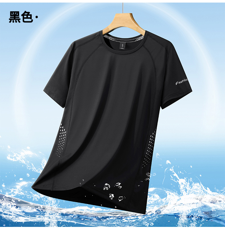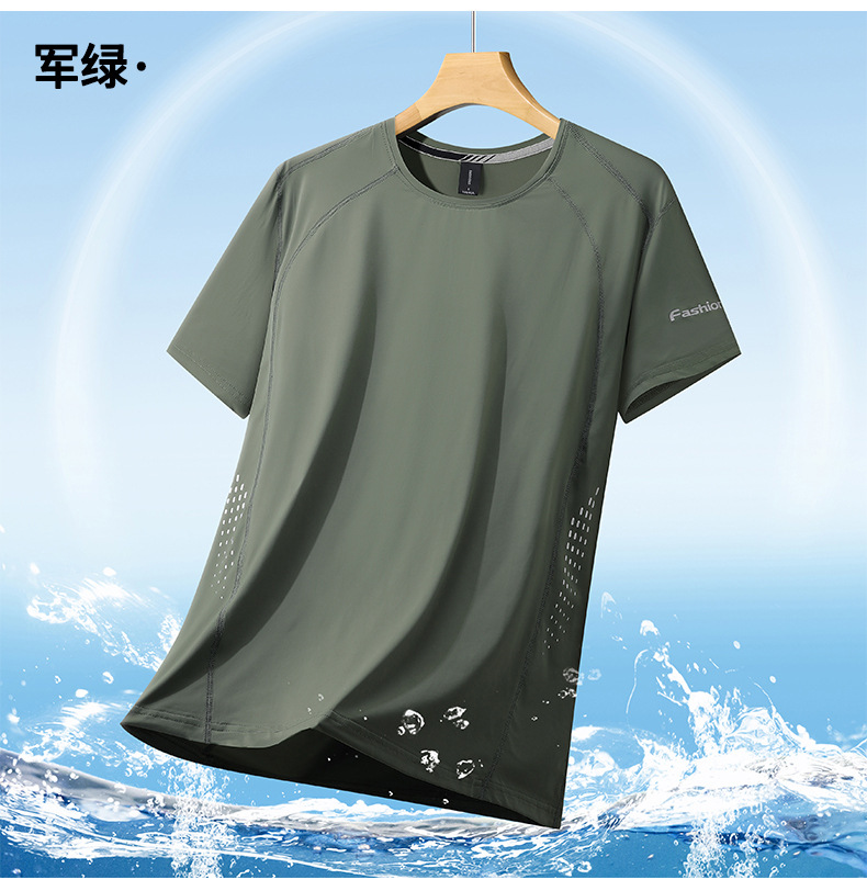 여름 아이스 실크 반팔 티셔츠 남자의 얇은 스포츠 피트니스 둥근 목 빠른 건조 옷 플러스 사이즈 느슨한 스트레치 통기성 탑스토어 가기