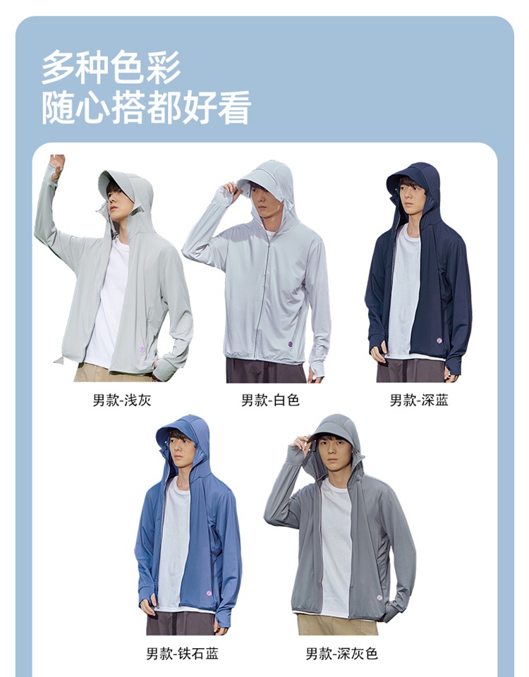여성용 크로스보더 여름 야외 자외선 차단 의류, 탈착식 챙, 얼음 실크 스포츠 코트, 남성용 자외선 차단 낚시 의류스토어 가기