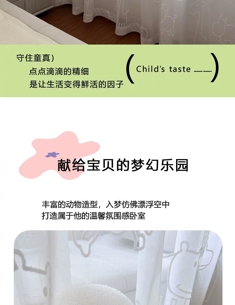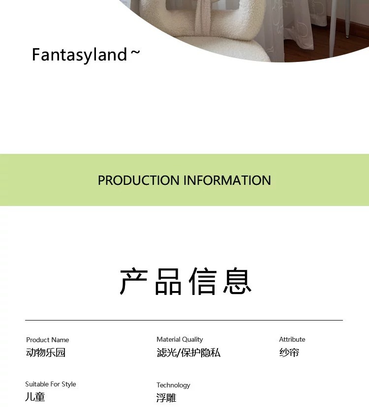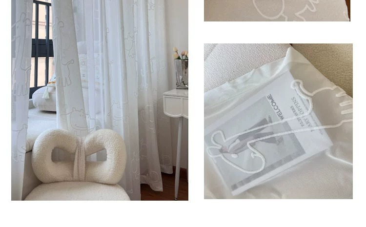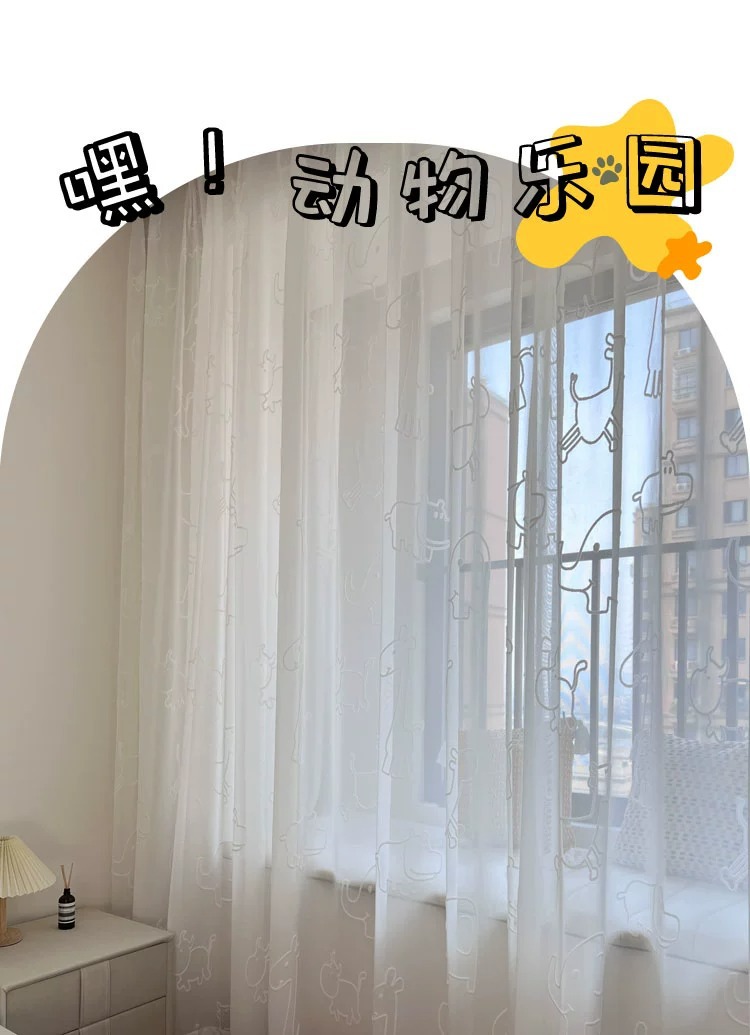 [동물의 왕국] 어린이 방 창 스크린 3D 입체 양각 자수 거즈 커튼 흰색 만화 커튼 침실 베드 창스토어 가기