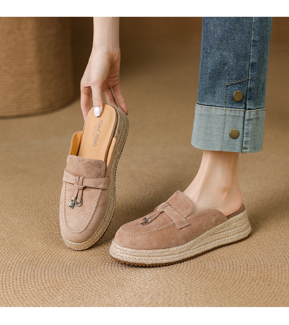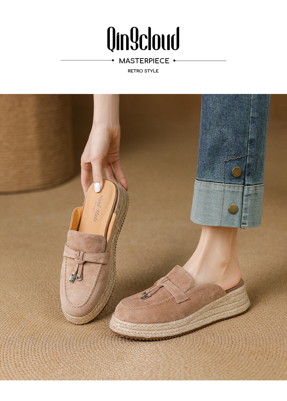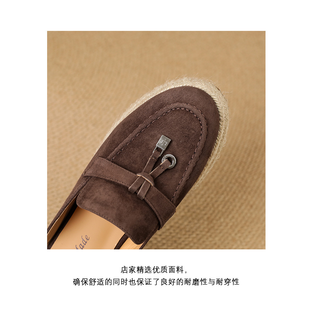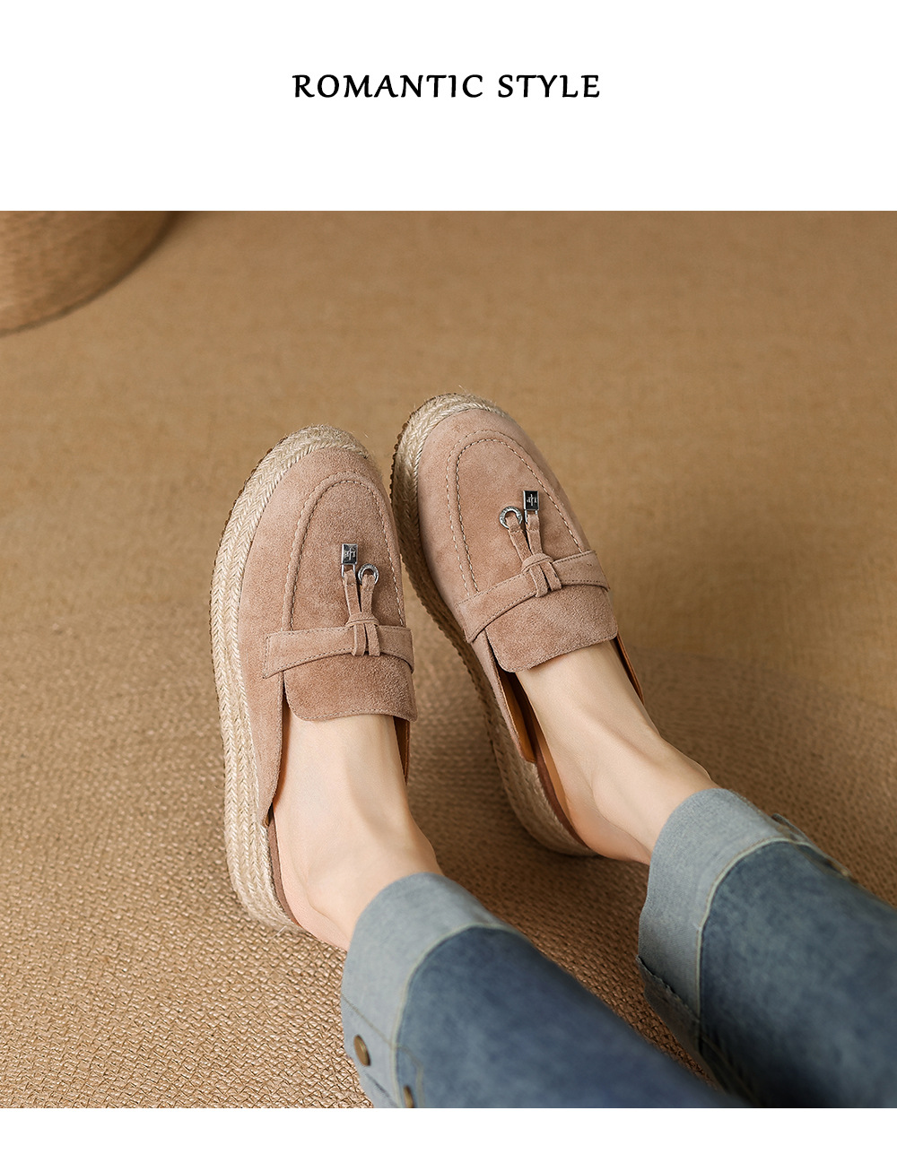 풀 가죽 두꺼운 바닥 로퍼 양 턴스킨 웨이퍼 플랫폼 하단 라운드 발가락 깊은 입 싱글 신발 캐주얼 빈티지 웨지 힐 신발