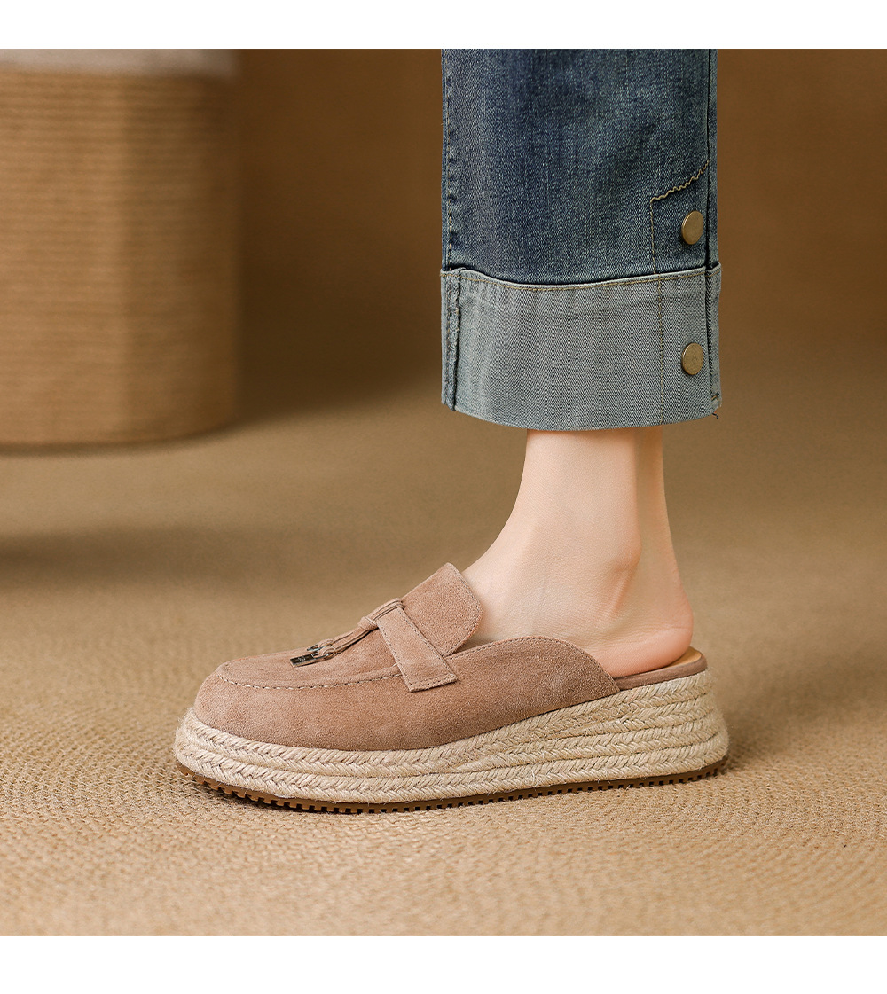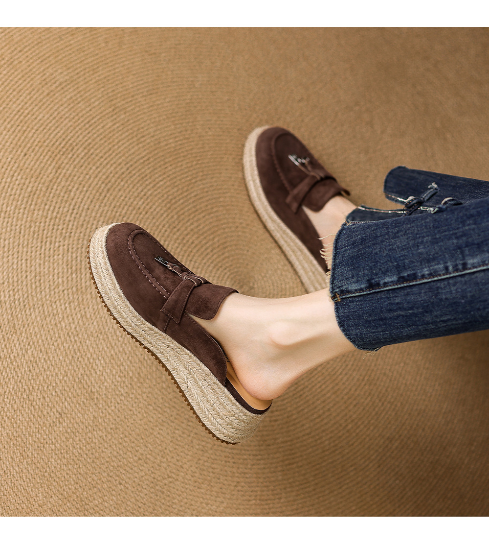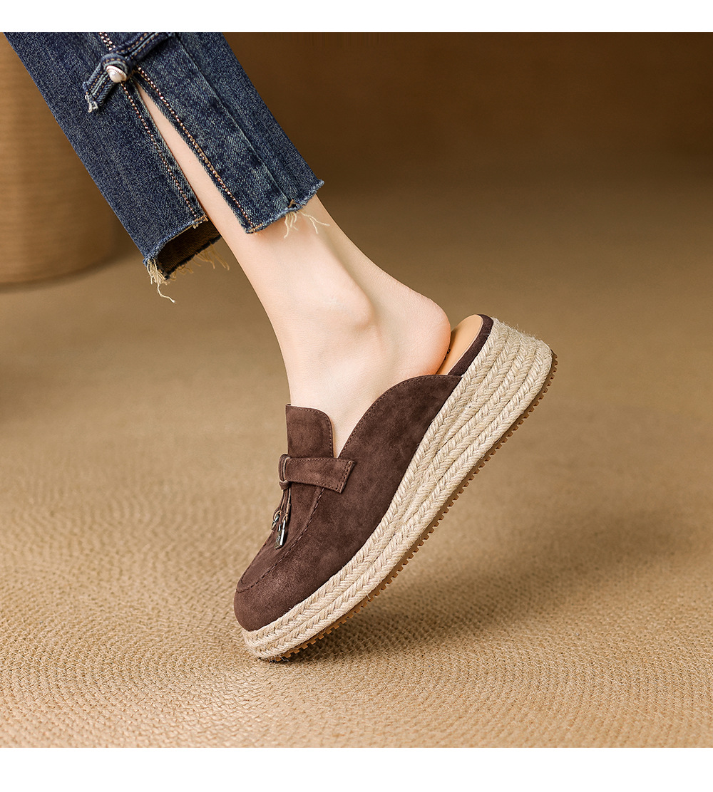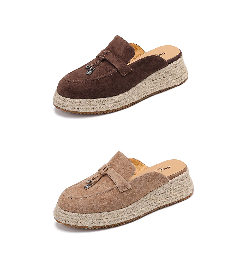 풀 가죽 두꺼운 바닥 로퍼 양 턴스킨 웨이퍼 플랫폼 하단 라운드 발가락 깊은 입 싱글 신발 캐주얼 빈티지 웨지 힐 신발