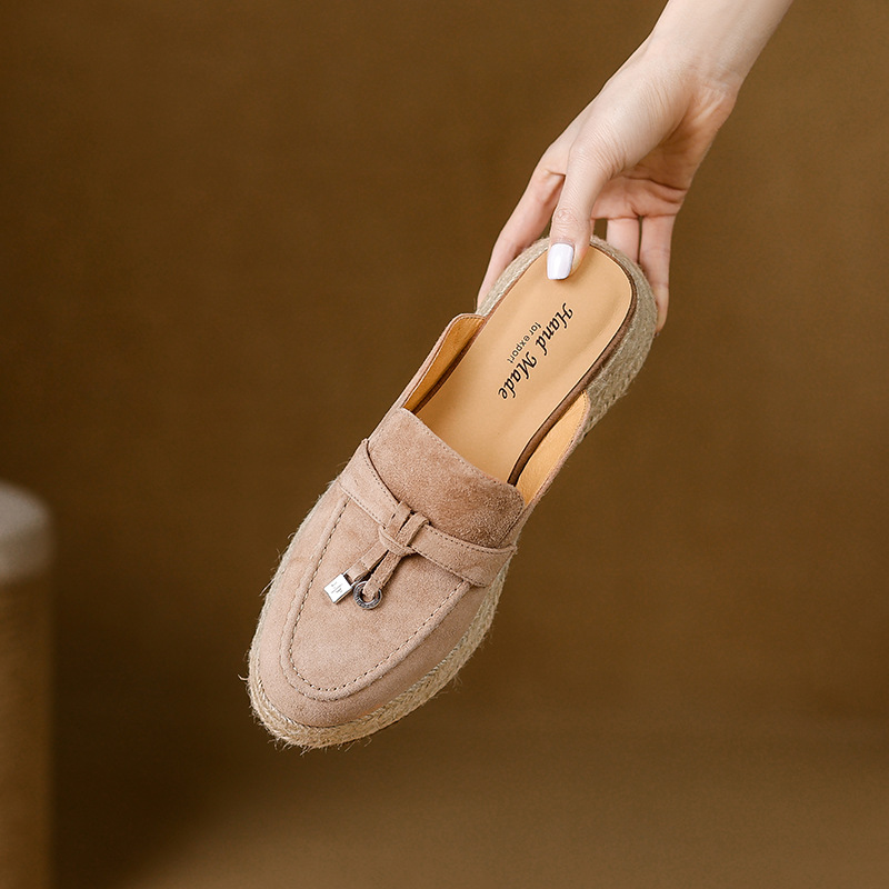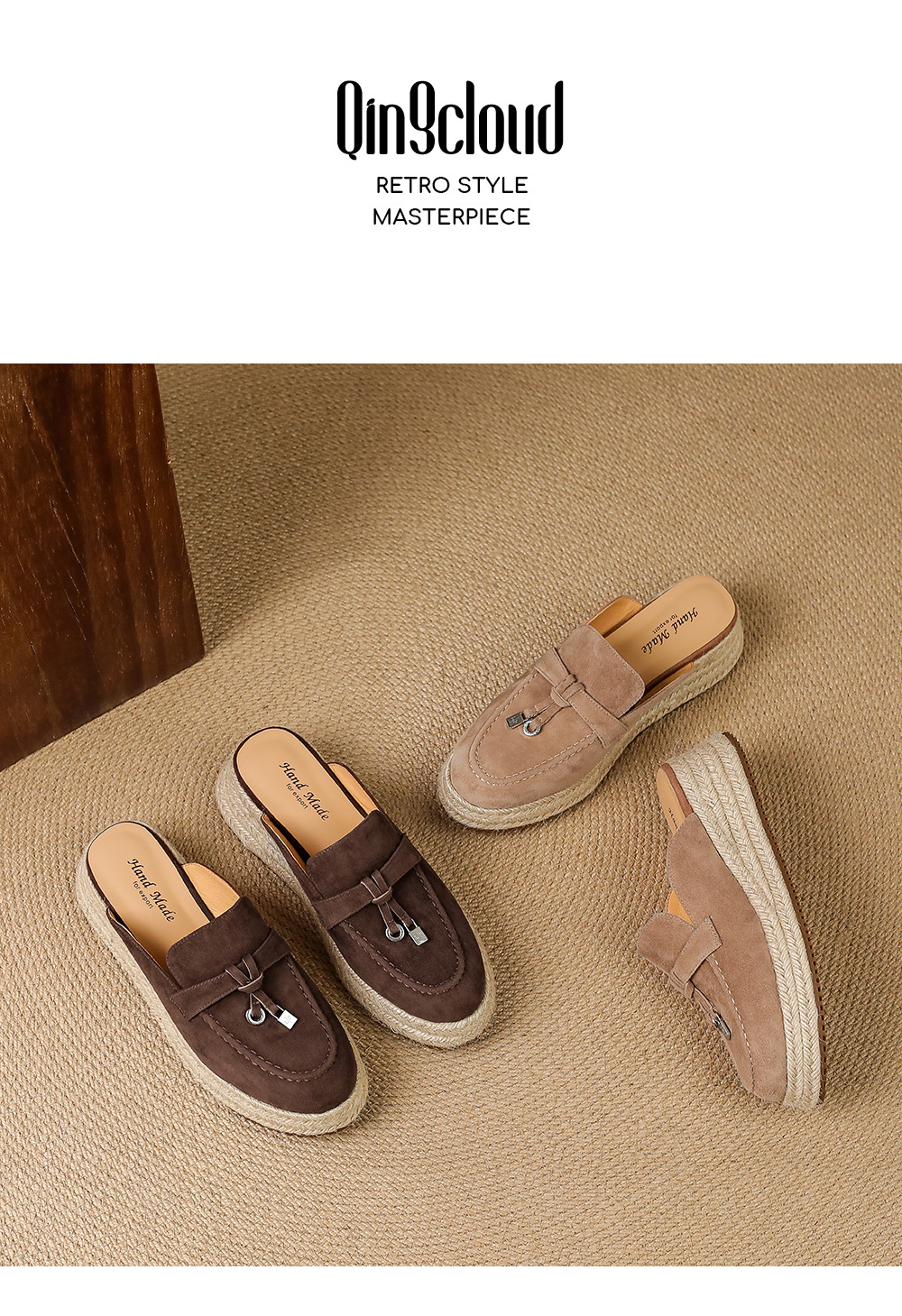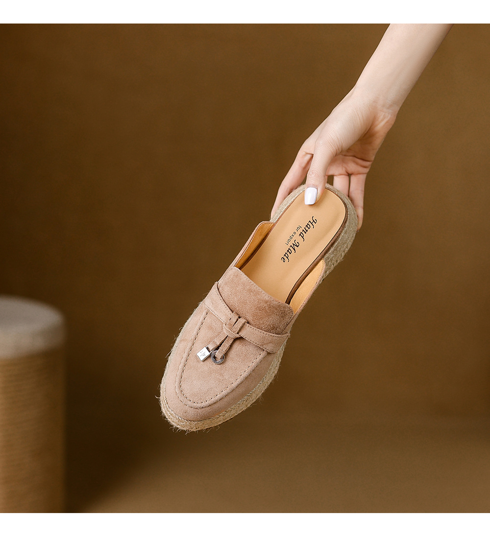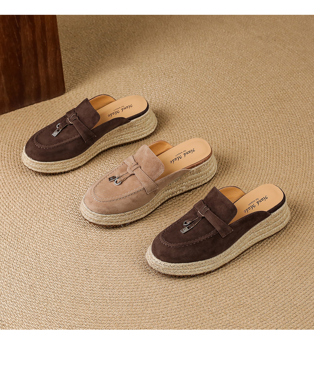 풀 가죽 두꺼운 바닥 로퍼 양 턴스킨 웨이퍼 플랫폼 하단 라운드 발가락 깊은 입 싱글 신발 캐주얼 빈티지 웨지 힐 신발