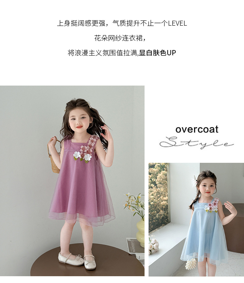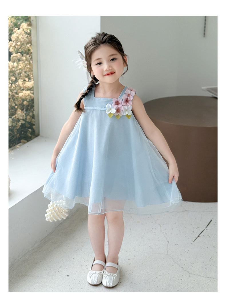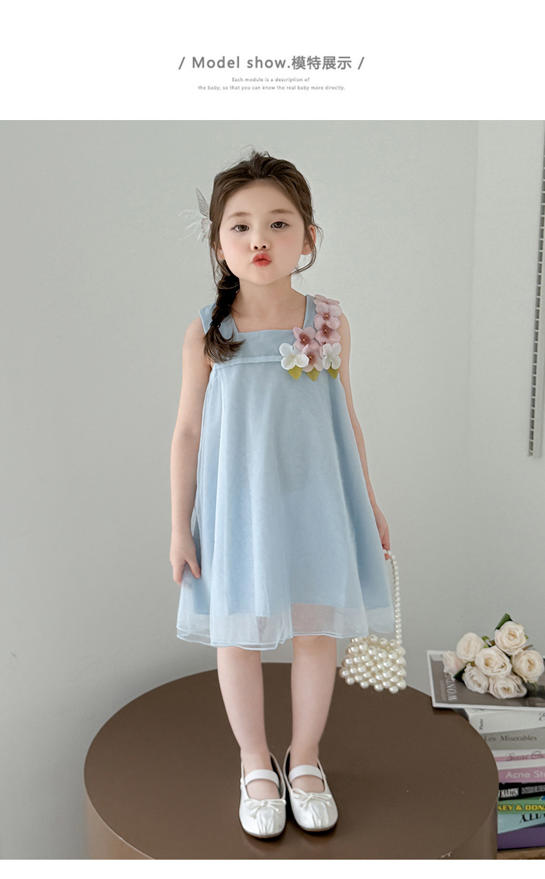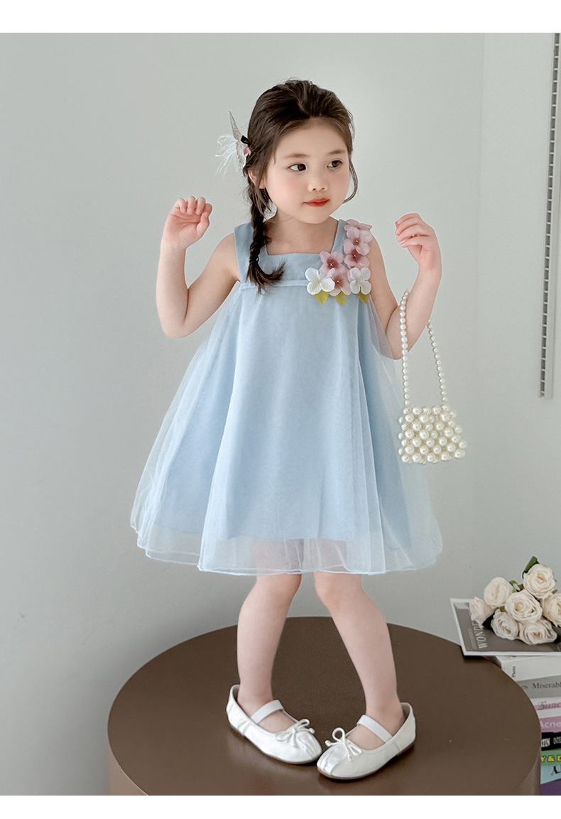 여자 공주 스타일 거즈 스커트 여름 어린이 스타일 달콤한 드레스 2025 새로운 아기 여름 서스펜더 스커트스토어 가기