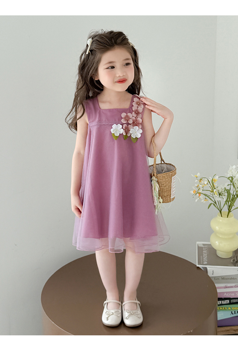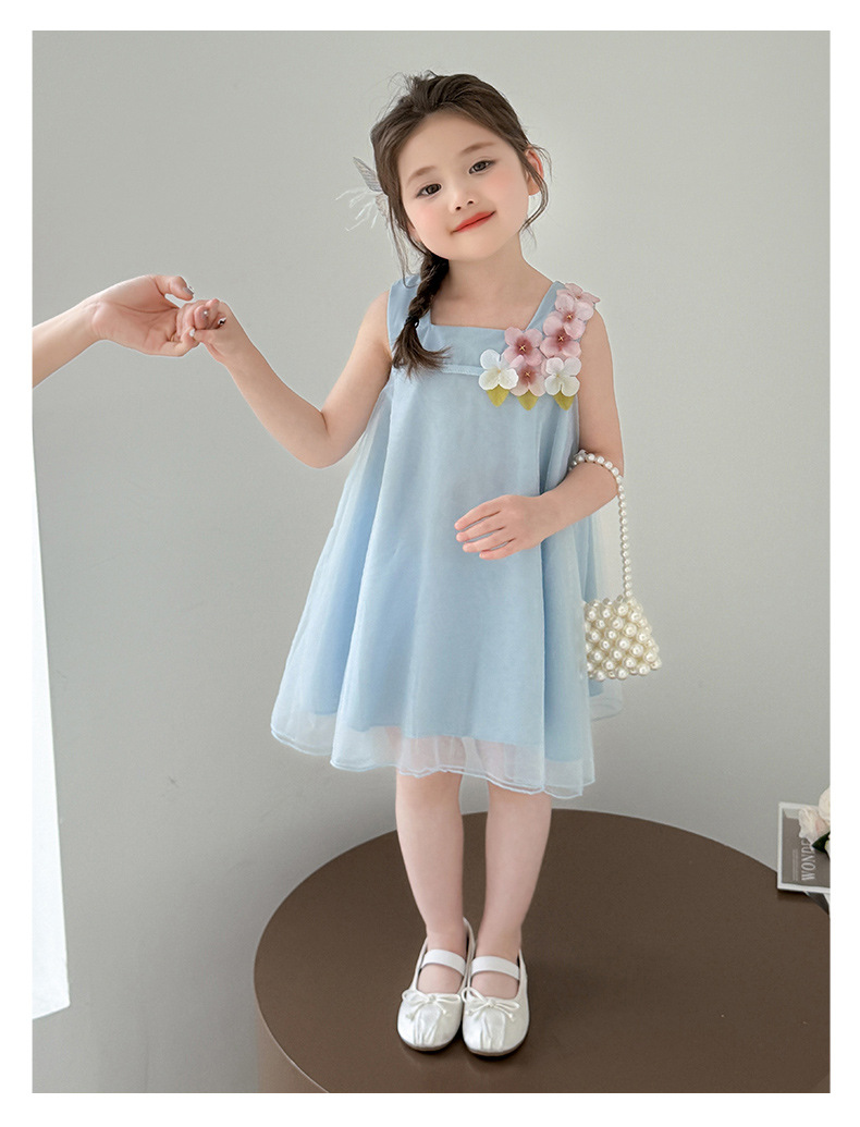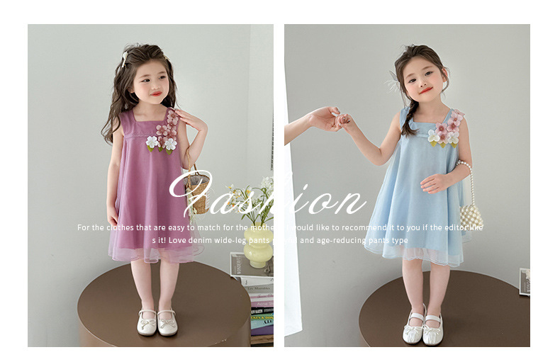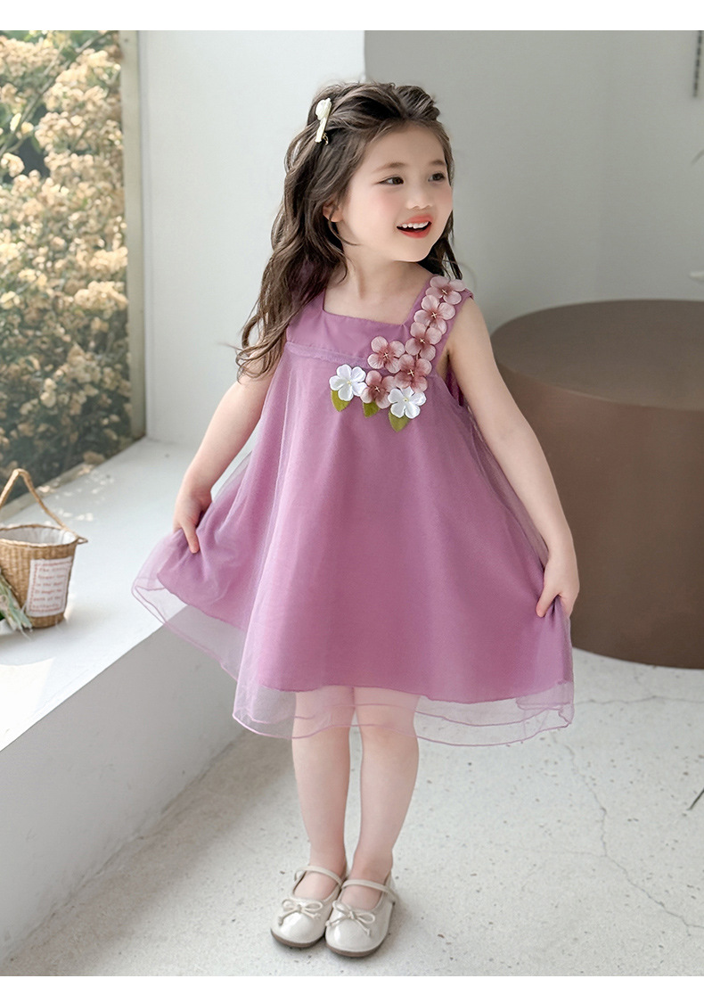 여자 공주 스타일 거즈 스커트 여름 어린이 스타일 달콤한 드레스 2025 새로운 아기 여름 서스펜더 스커트스토어 가기