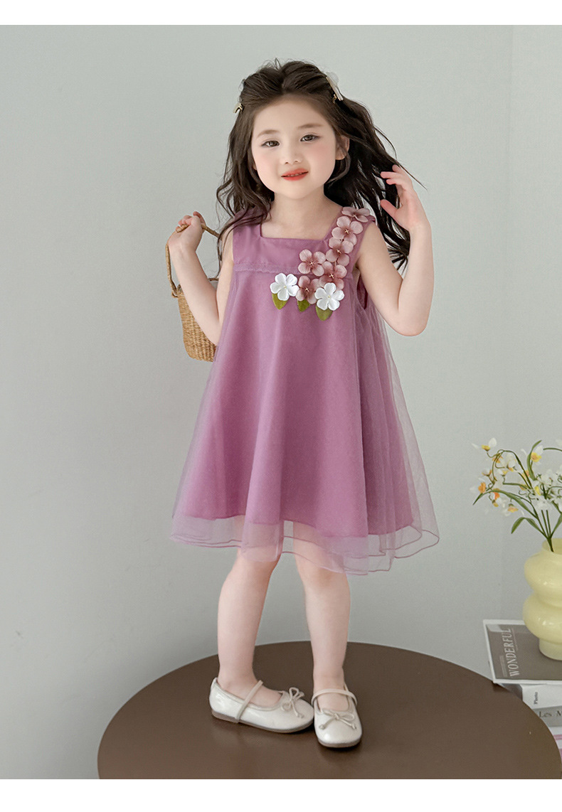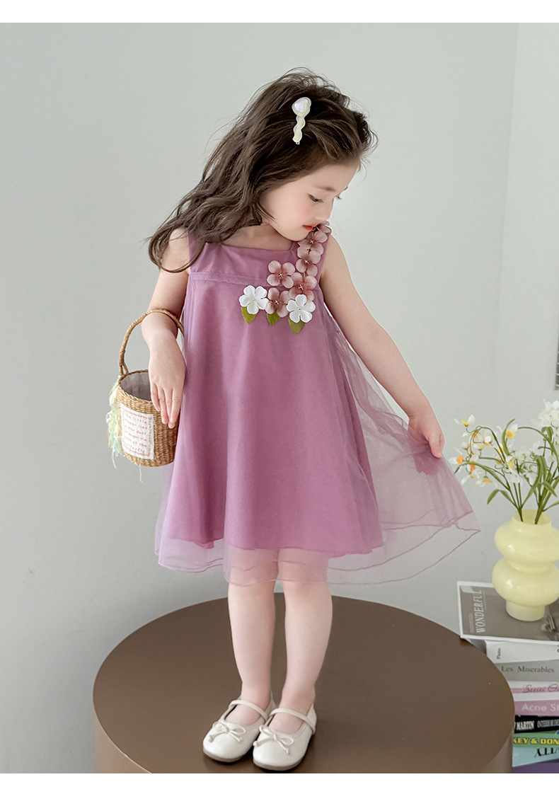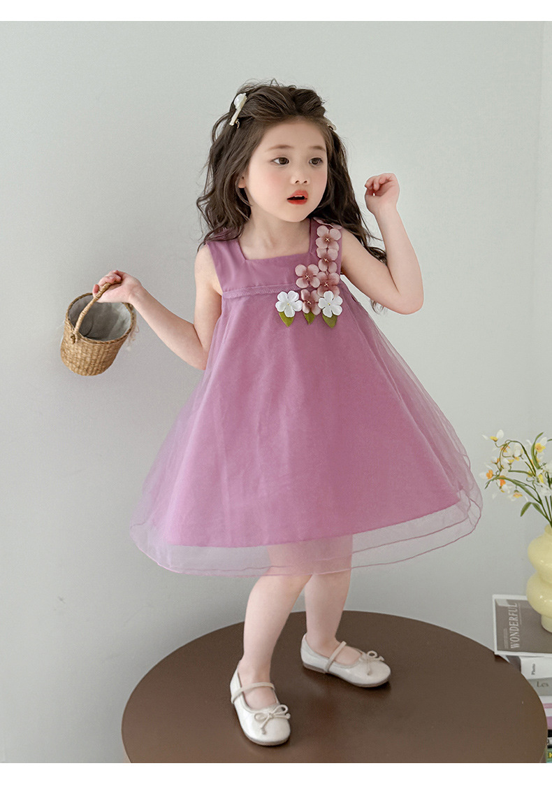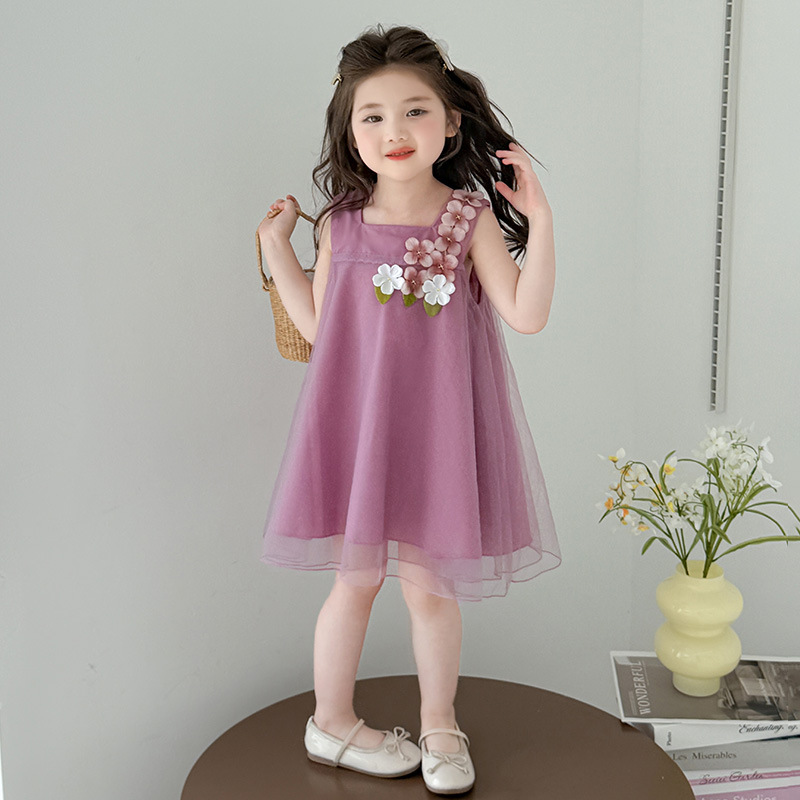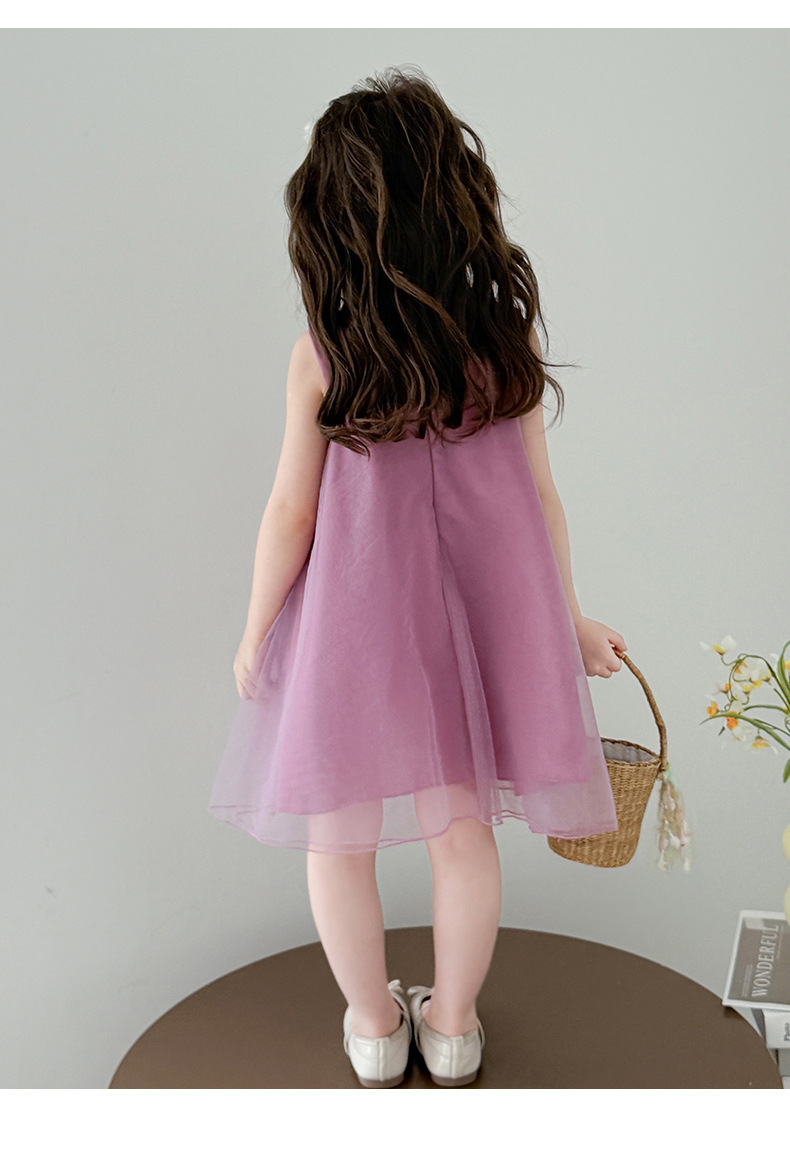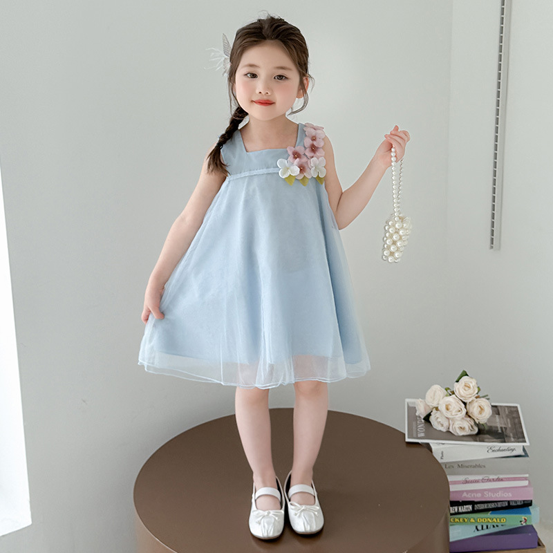 여자 공주 스타일 거즈 스커트 여름 어린이 스타일 달콤한 드레스 2025 새로운 아기 여름 서스펜더 스커트