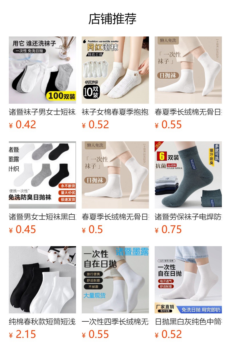 남녀공용 캐주얼 편리한 일회용 땀흡수 통기성 사계절용 세탁불필요 흑백그레이 무지 보트형 중목 일회용 양말스토어 가기