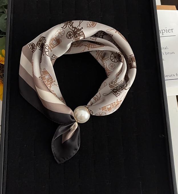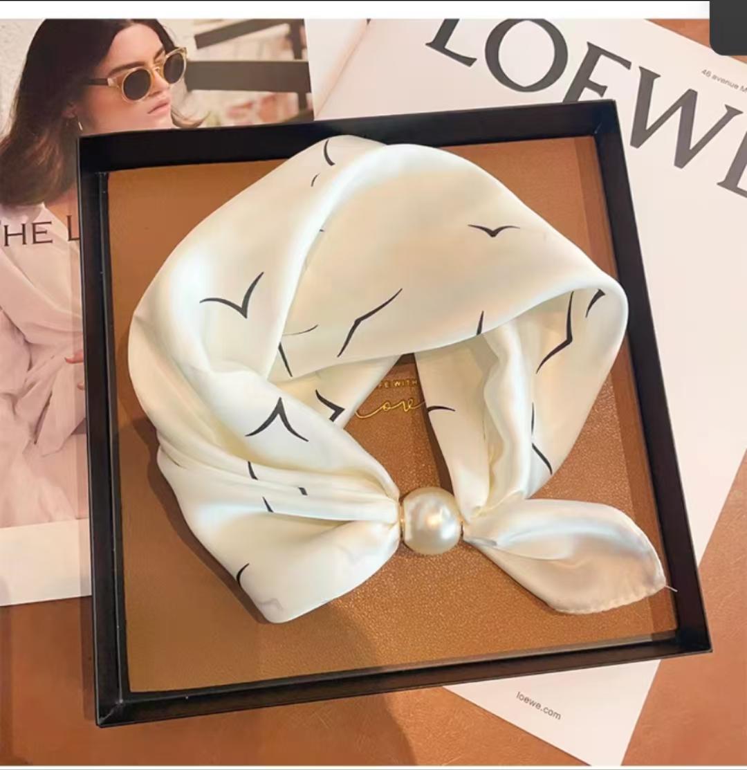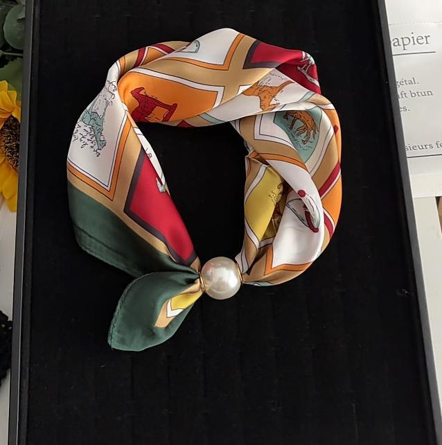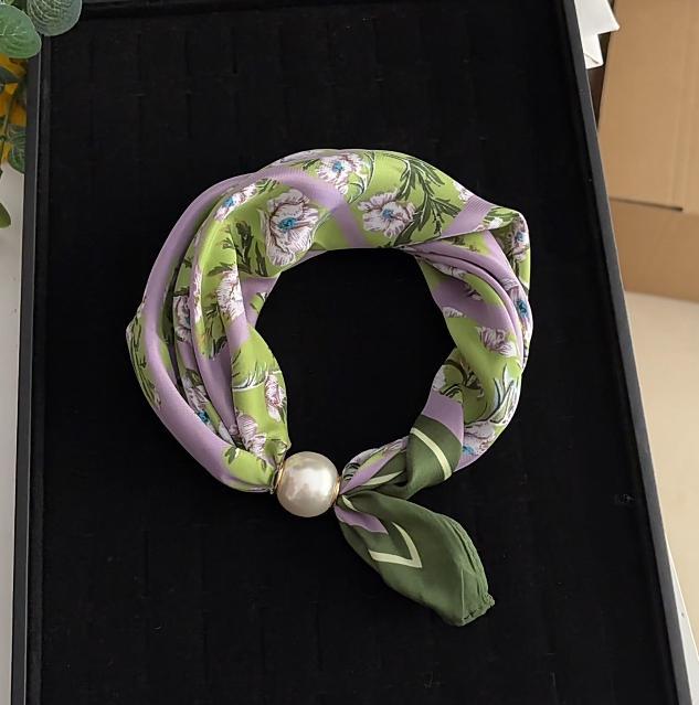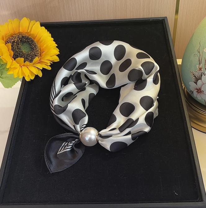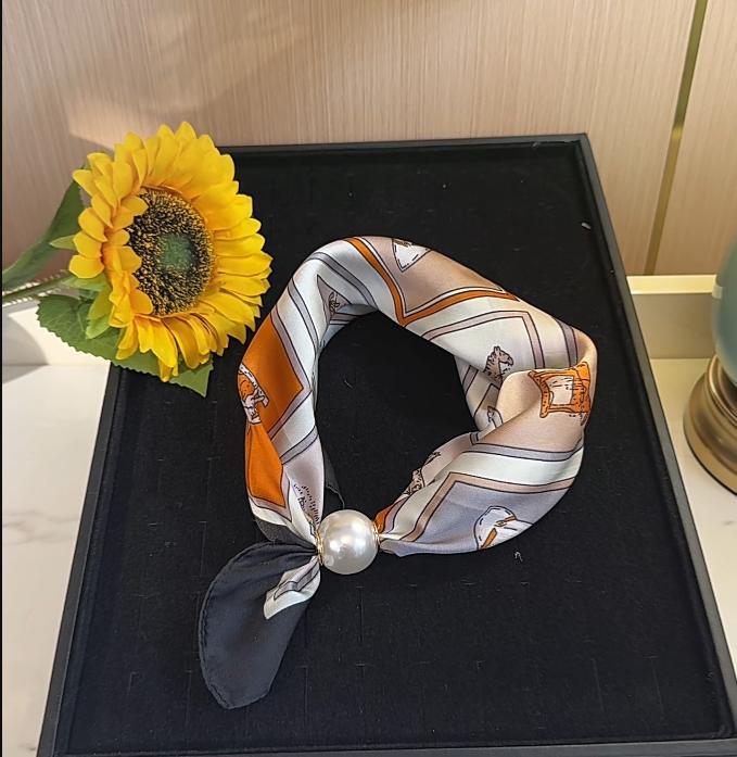 2025년 여름 새로운 스타일의 아이스 실크 새틴 비즈 자석 버클 스카프 여성 패션 다용도 목 보호 긴 스카프 여행 사진 스카프스토어 가기