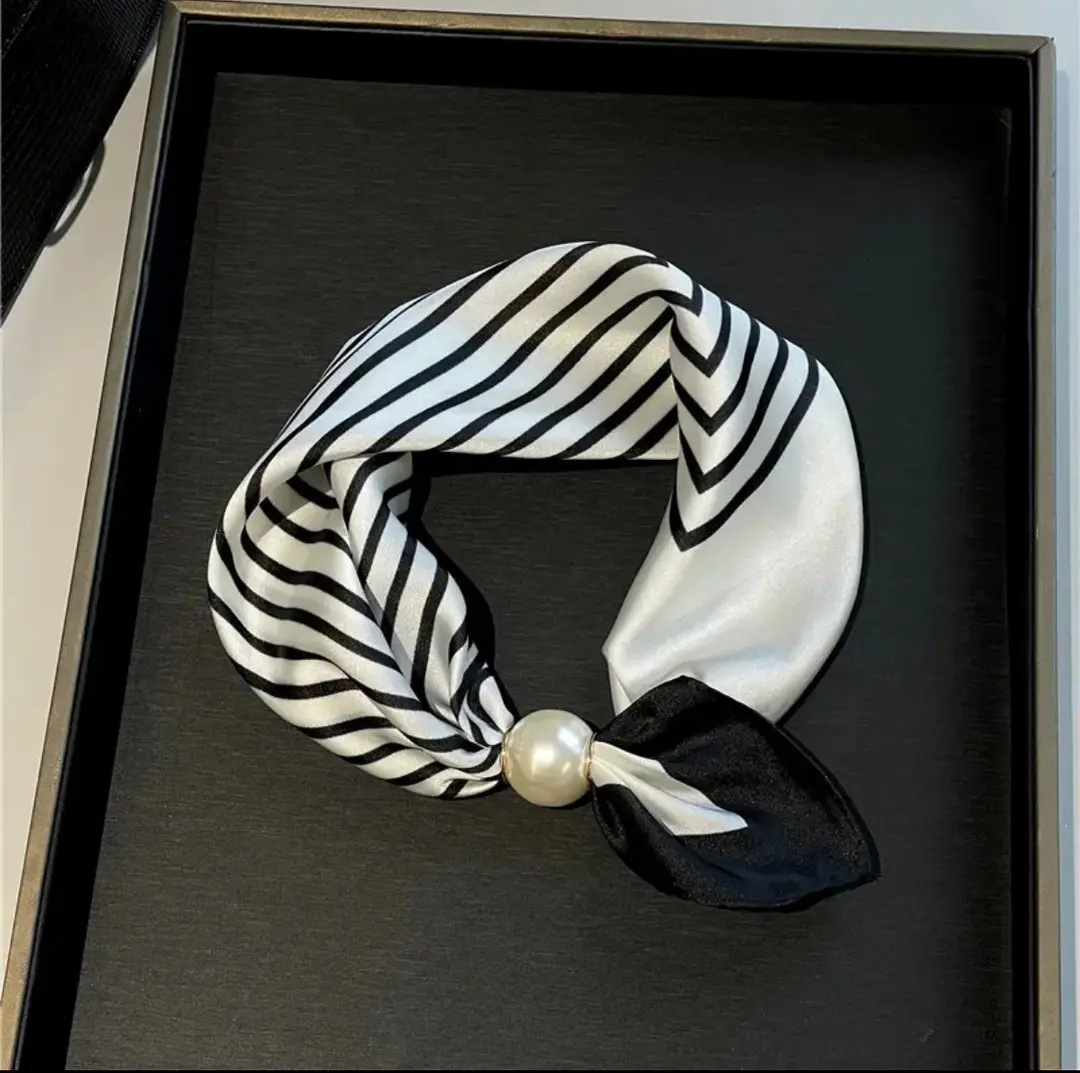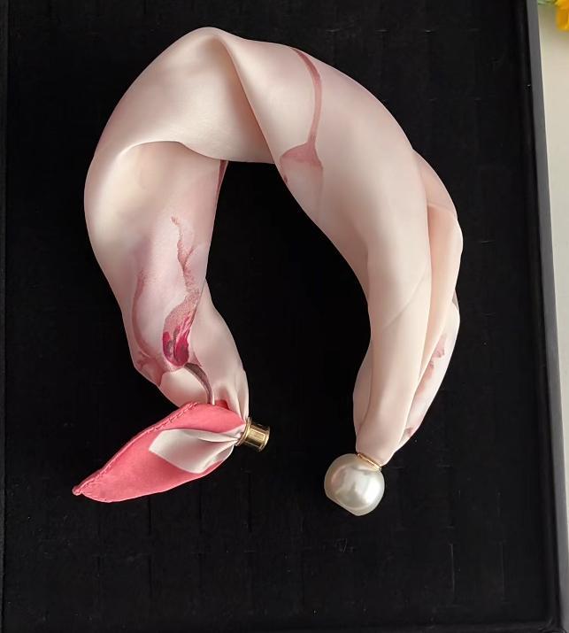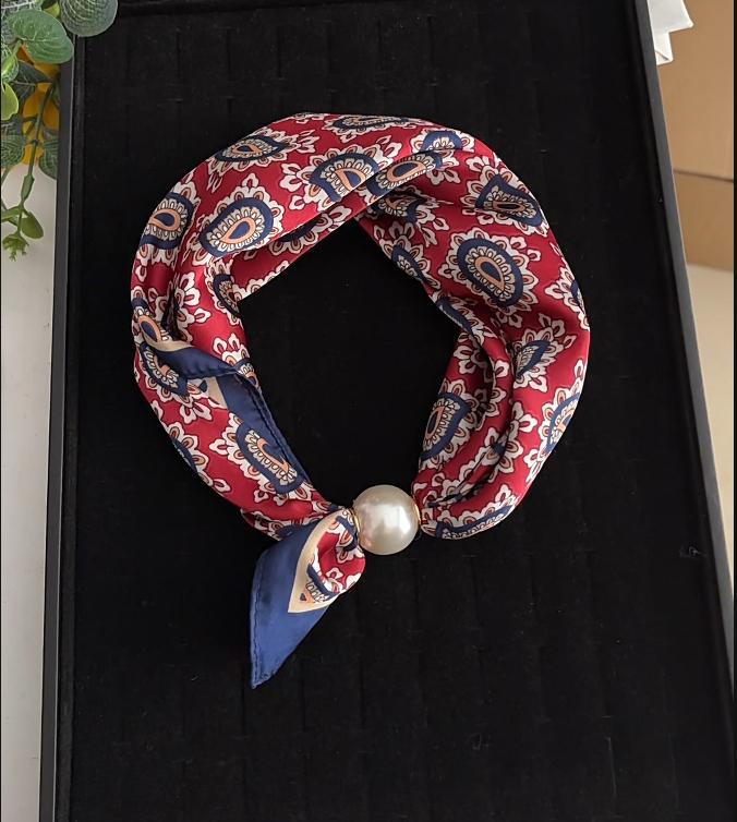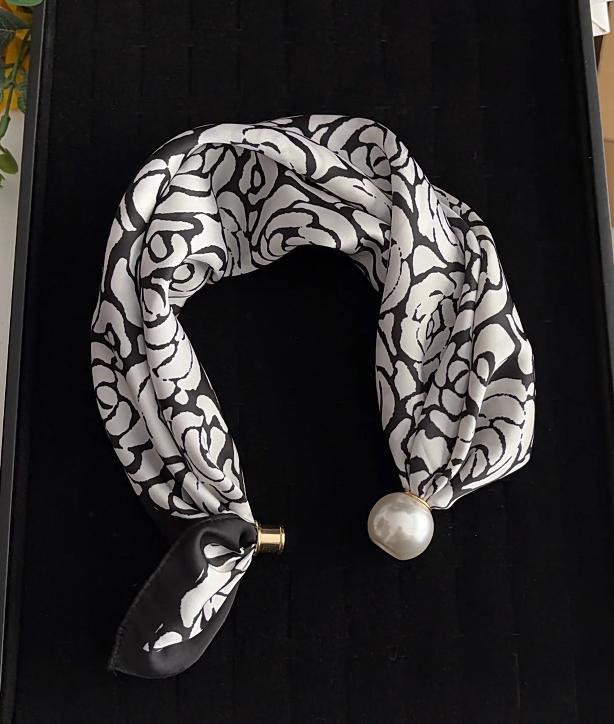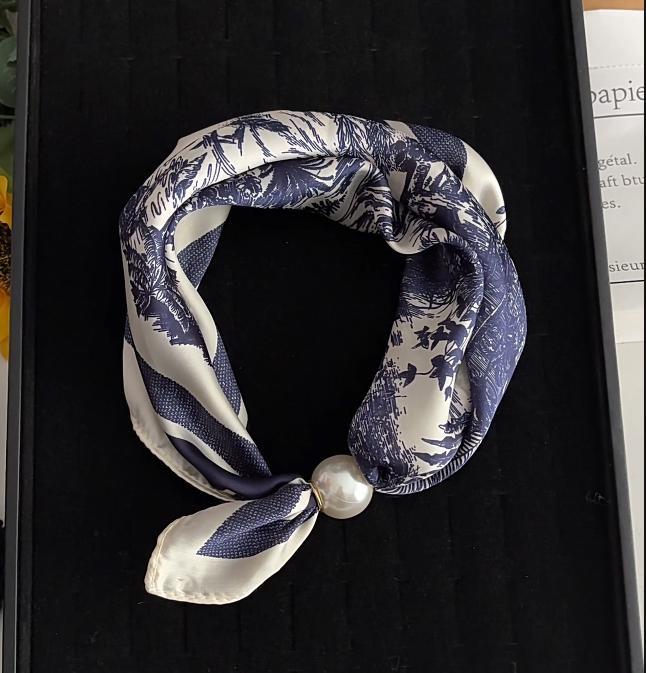 2025년 여름 새로운 스타일의 아이스 실크 새틴 비즈 자석 버클 스카프 여성 패션 다용도 목 보호 긴 스카프 여행 사진 스카프스토어 가기