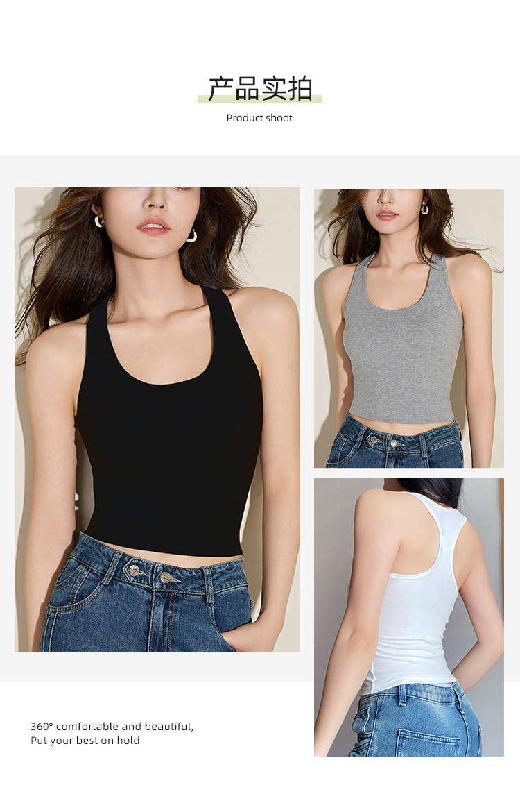 가슴 패드로 I 자형 아름다운 뒤 조끼 여자 비 달리기 컵 여름 얇은 통기성 노마크 내부 슬림 스파이스 걸 탑