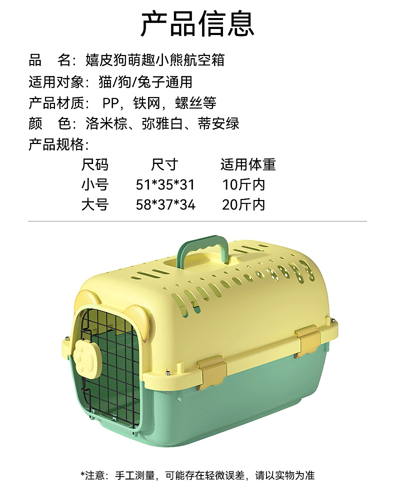 애완 동물 공기 케이스 귀여운 재미있는 곰 외출 고양이 수송 케이스 휴대용 자동차 개 케이지 중소 개 공기 케이스